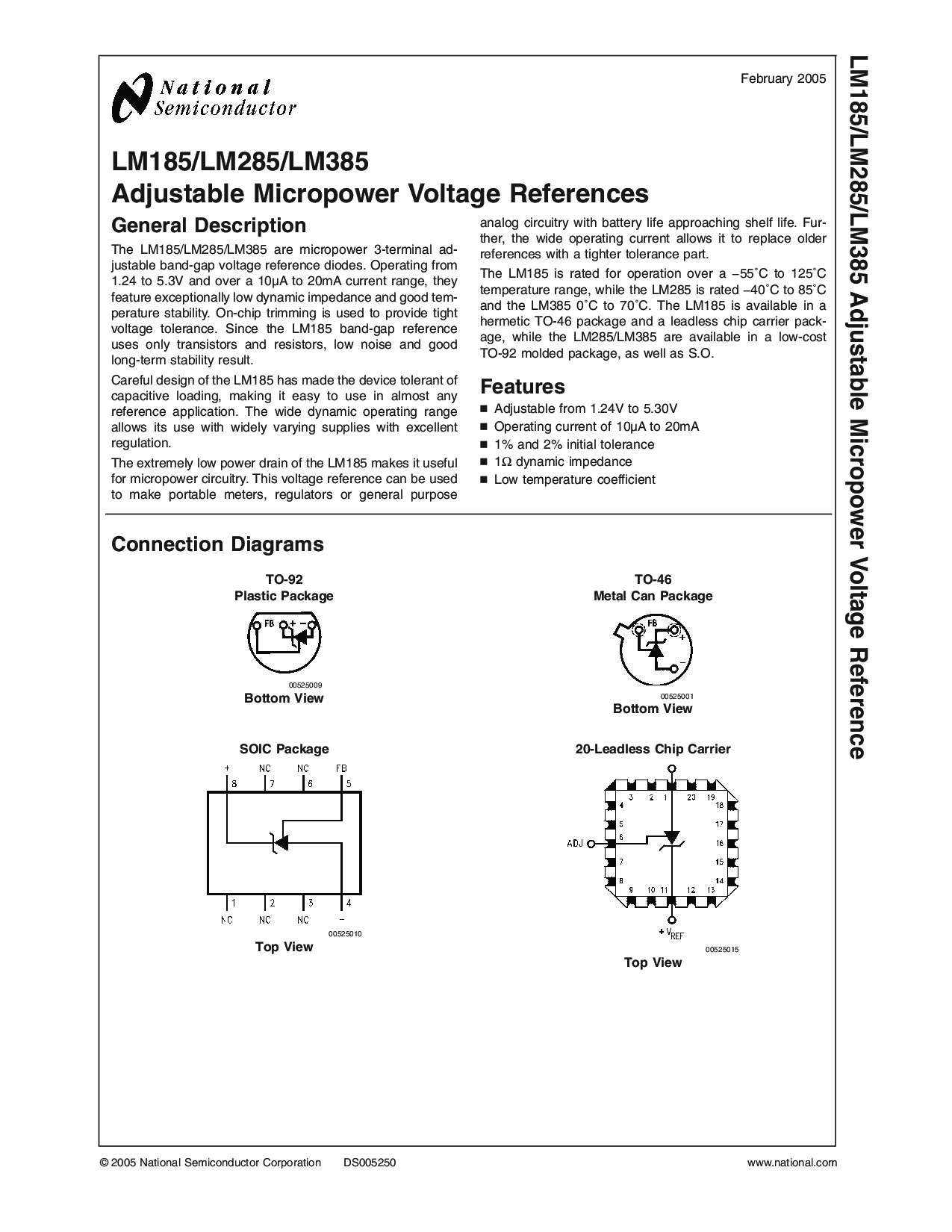 和 这 LM385 0˚C 至 70˚c. 这 LM185 是 可用 入点 一个