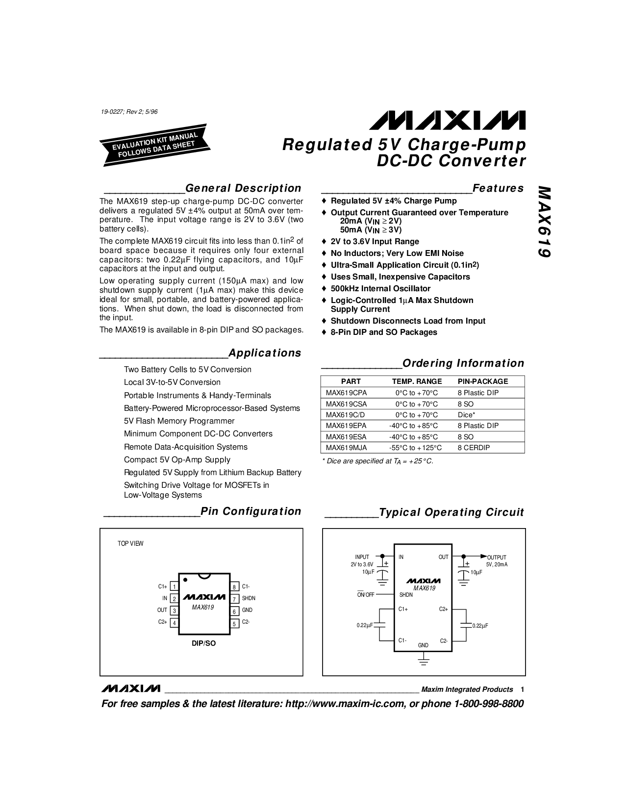 用于 免费 样品 &放大器; 这 最新 文学: http://www.马克西姆-集成电路.com, 或 电话 1-800-998-8800