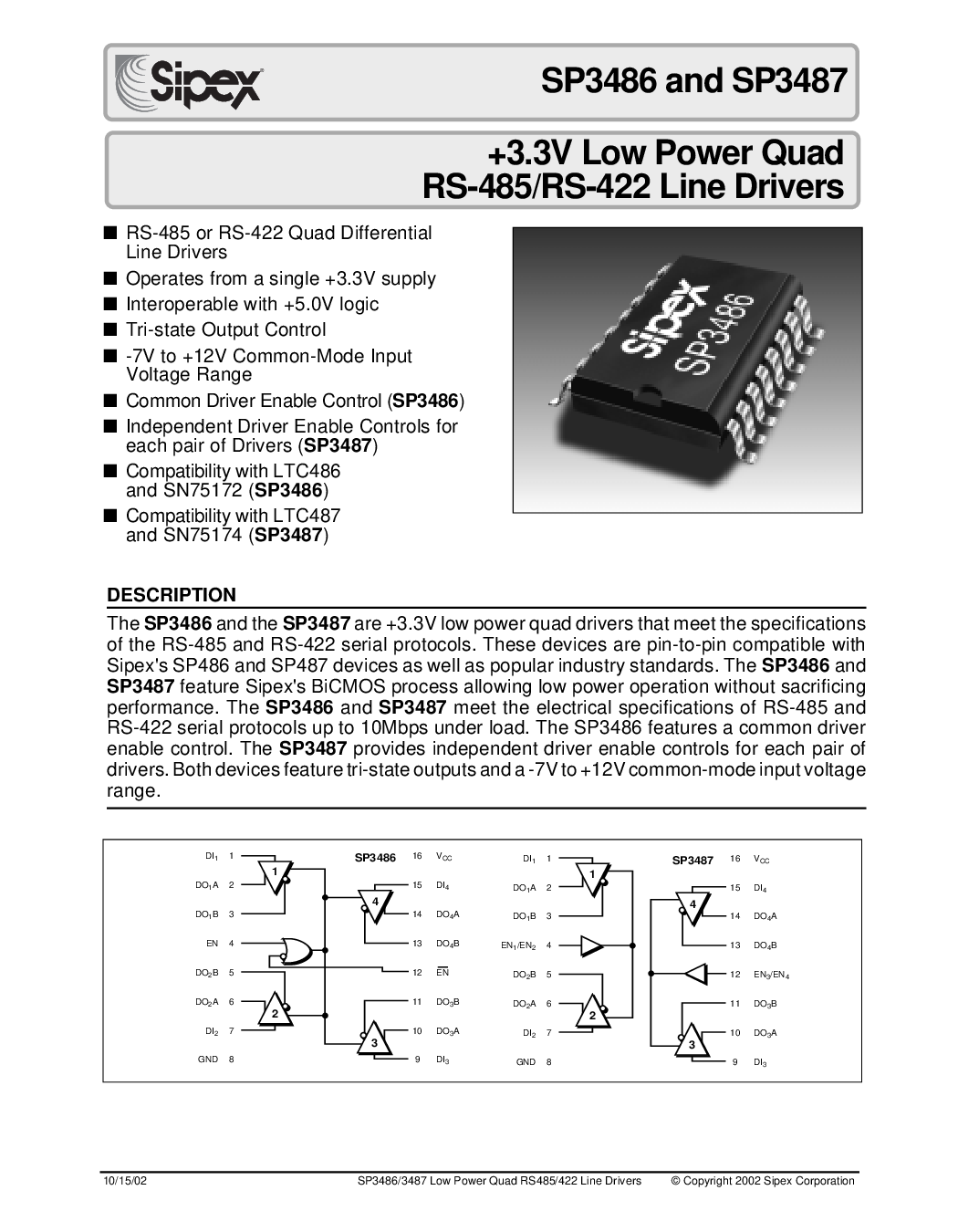 10/15/02 sp3486/3487 低 电源 四边形 rs485/422 线 驱动程序 © 版权 2002 sipex 公司