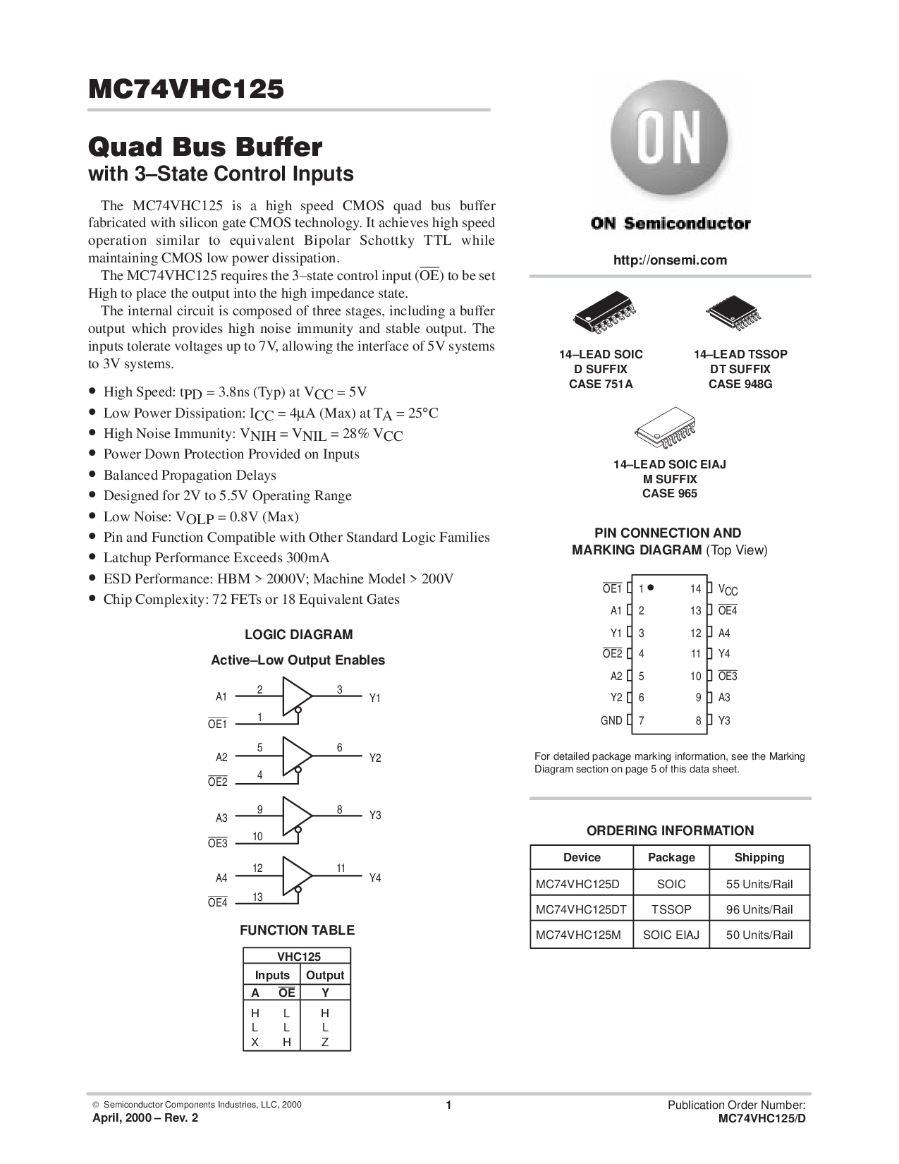 MC74VHC125D SOIC 55 单位/轨道