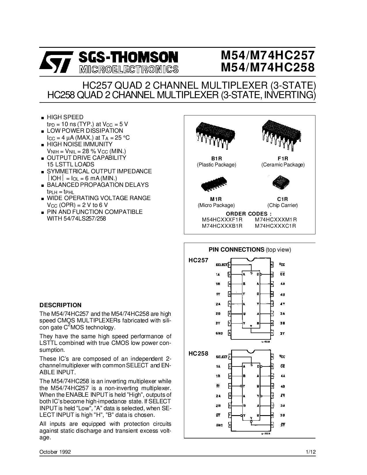HC258QUAD 2CHANNEL MULTIPLEXER 3-STATE, INVERTING HC257 QUAD 2 CHANNEL MULTIPLEXER 3-STATE