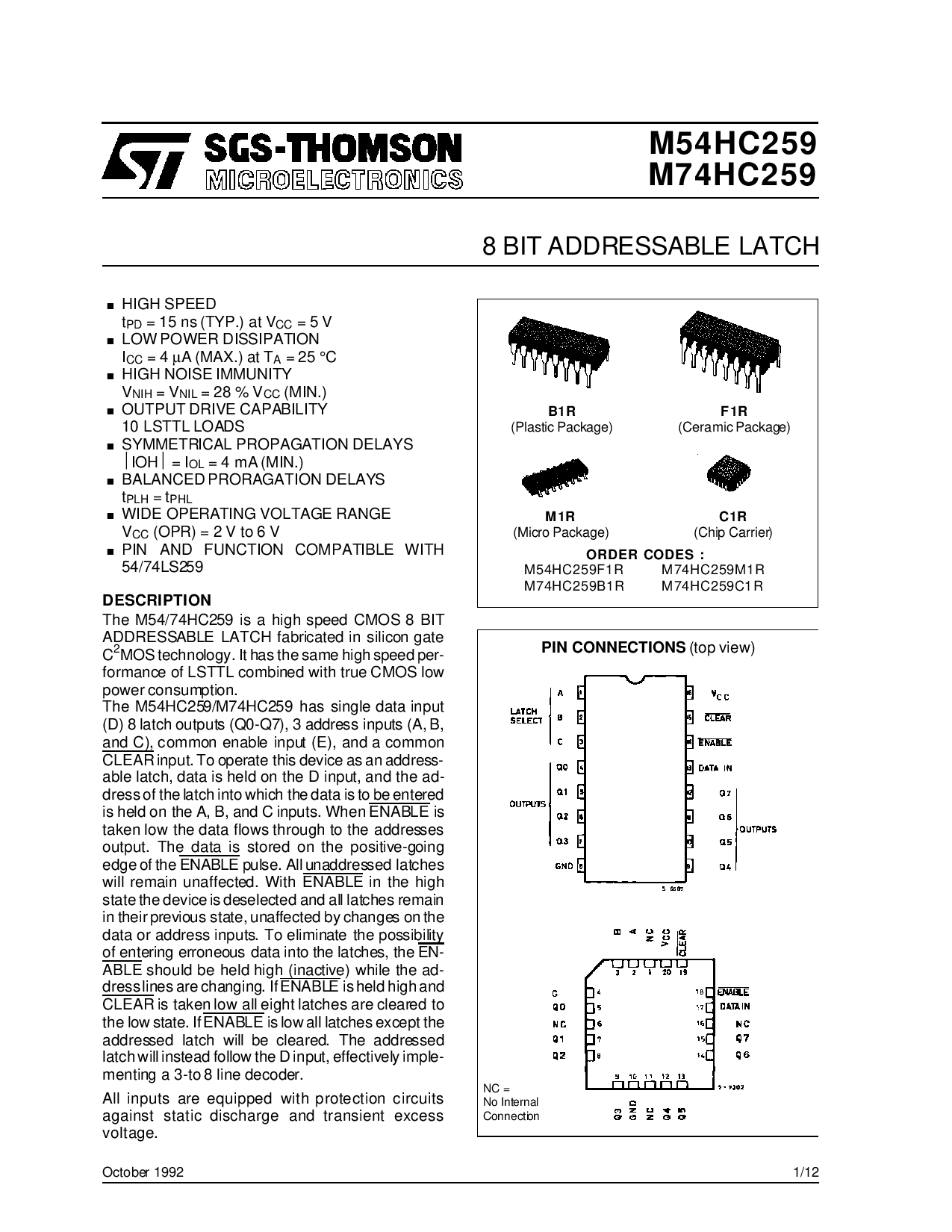 这 m54/74hc259 是 一个 高 速度 CMOS 8 有点