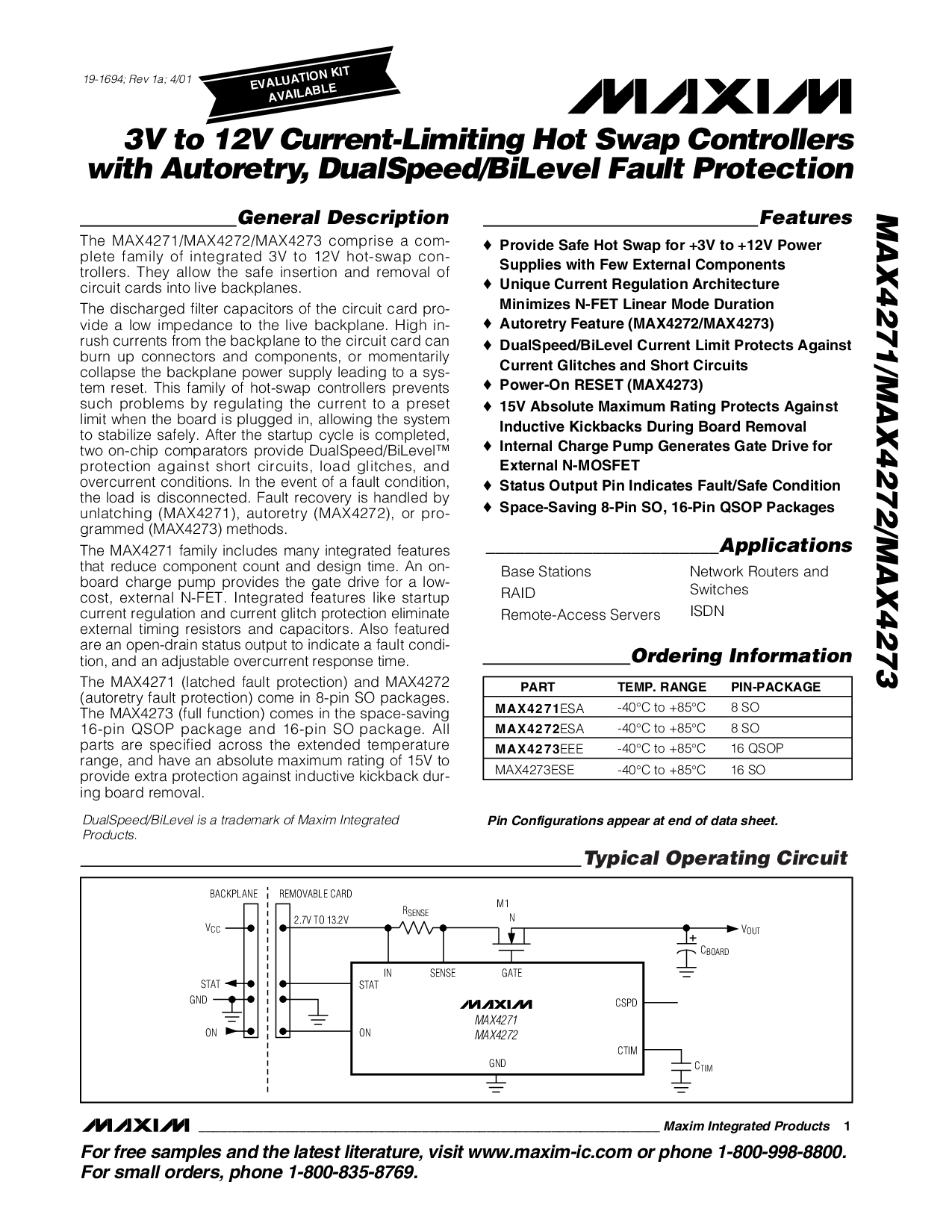 用于 免费 样品 和 这 最新 文学, 参观 www.马克西姆-集成电路.com 或 电话 1-800-998-8800.