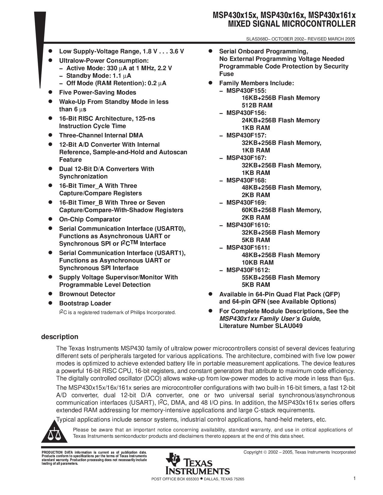 浏览型号MSP430F168IRTD的Datasheet PDF文件第2页