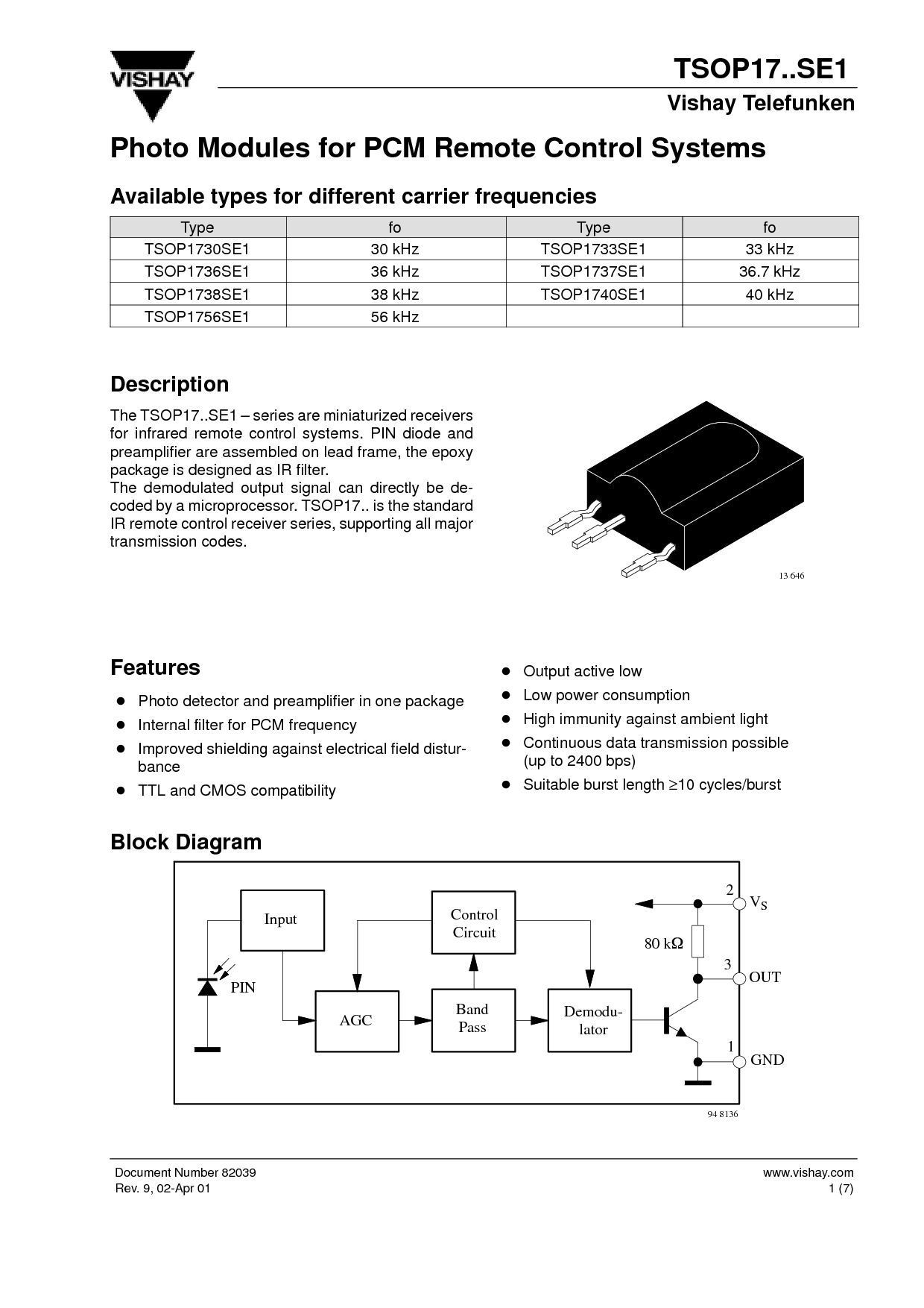 TSOP1730SE1 30 khz TSOP1733SE1 33 khz