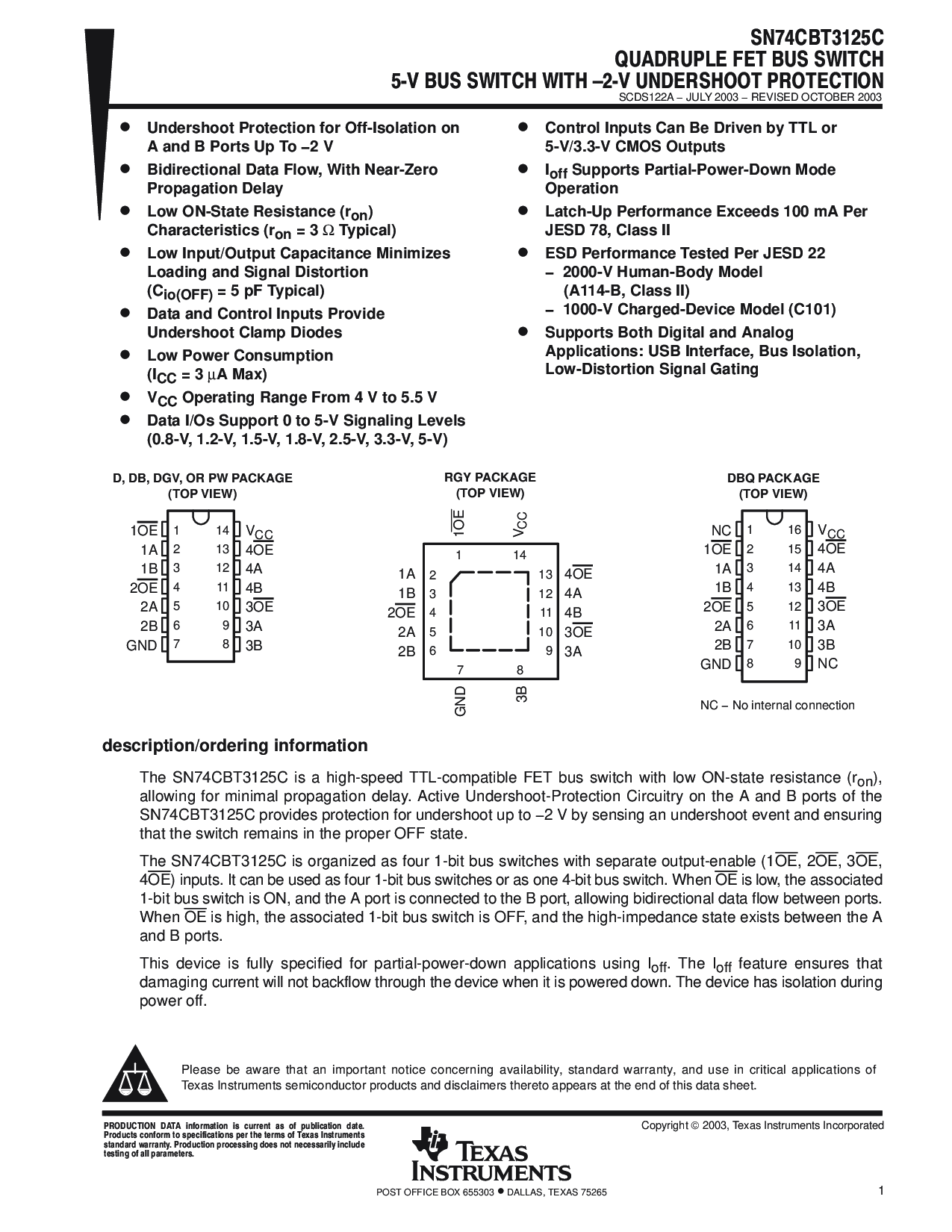 SN74CBT3125C提供 保护 用于 下冲 向上 至 −2 v 由 感应 一个 下冲 事件 和 确保