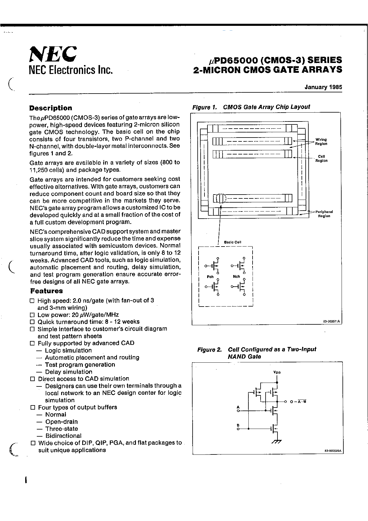 UPD65000 (CMOS-3) SERIES 2-MICRON CMOS GATE ARRAYS