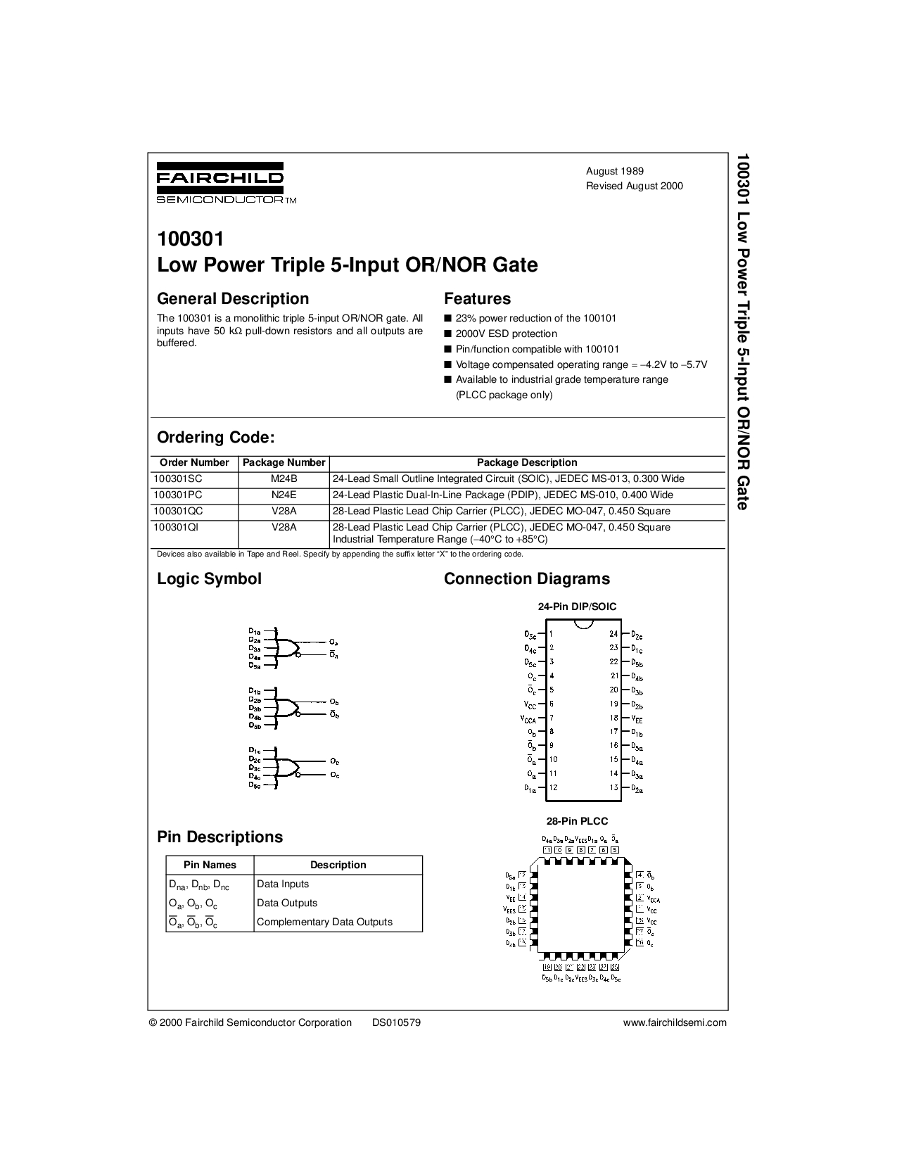 这 100301 是 一个 单片 三倍 5-输入 或/也没有 闸门. 全部