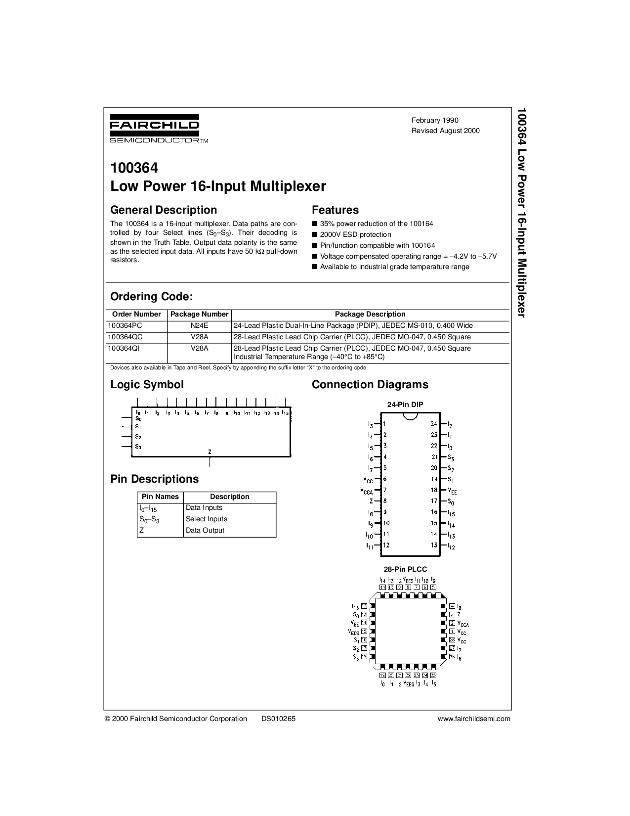 浏览型号100364的Datasheet PDF文件第2页