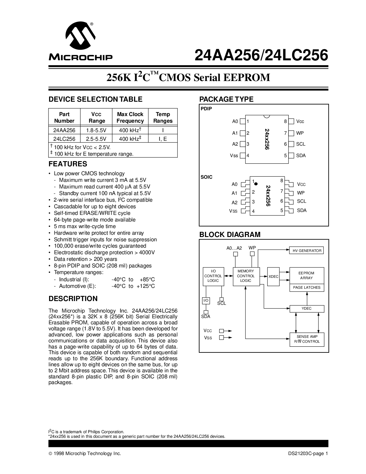 *24xx256 是 已使用 入点 这个 文件 作为 一个 通用 零件 号码 用于 这 24aa256/24lc256 设备.