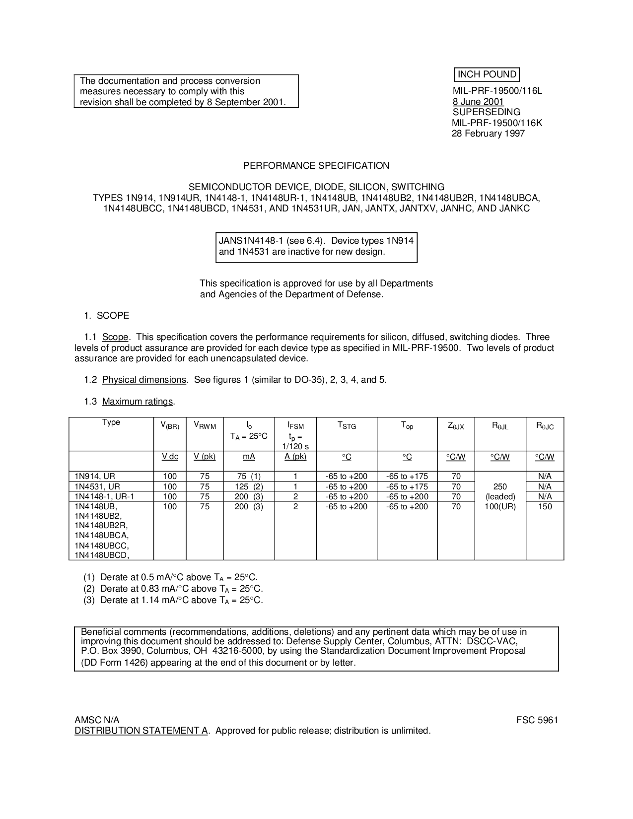 1.1 范围. 这个 规格 盖子 这 业绩 要求 用于 硅, 扩散, 开关 diodes. 三个