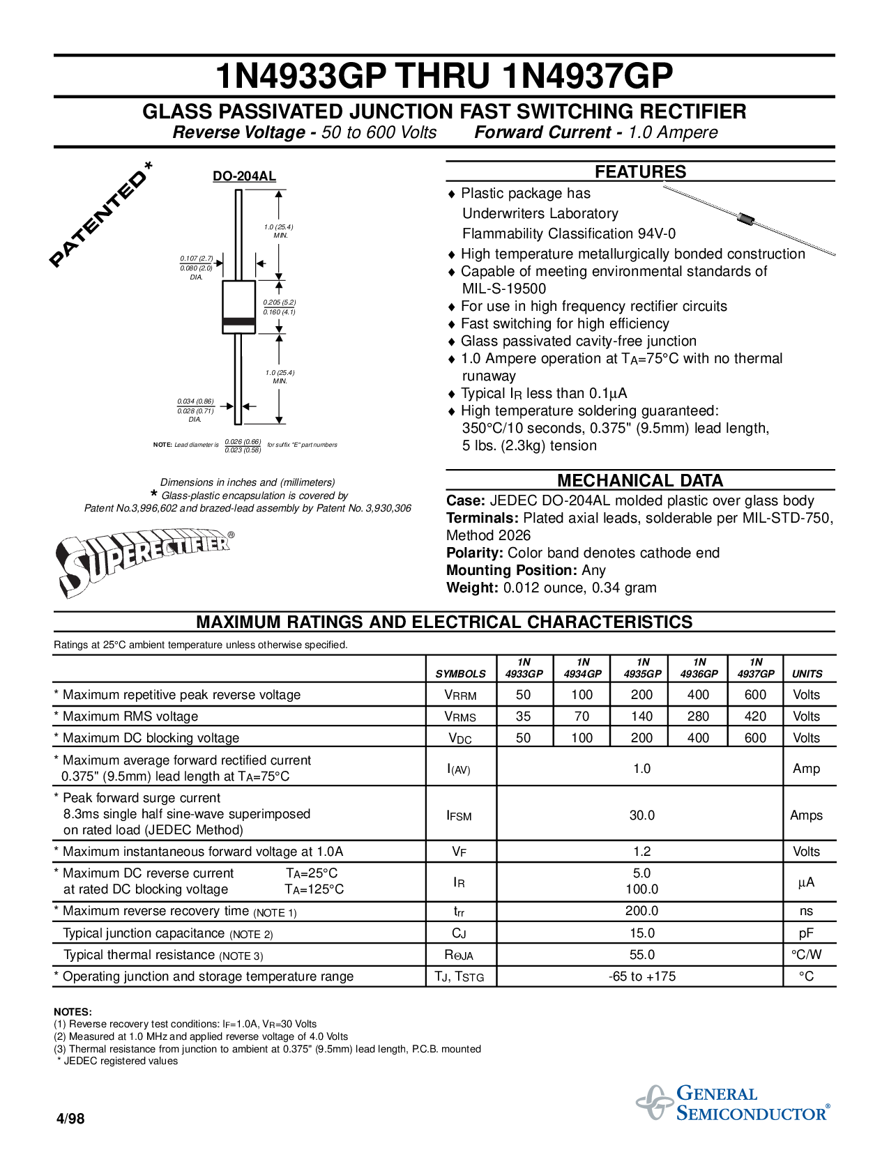 * 最大值 瞬时 前进 电压 在 1.0a v