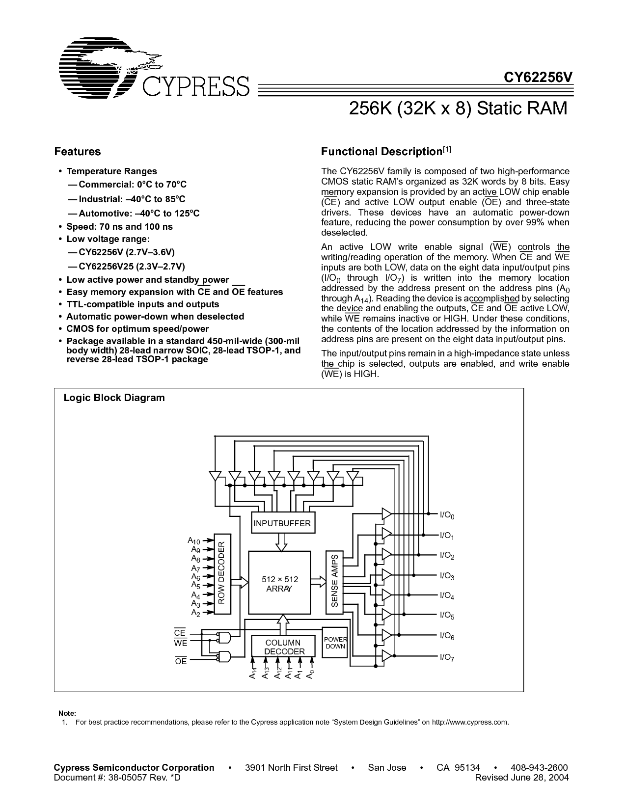 文件 #: 38-05057 rev. *d 修订 六月 28, 2004