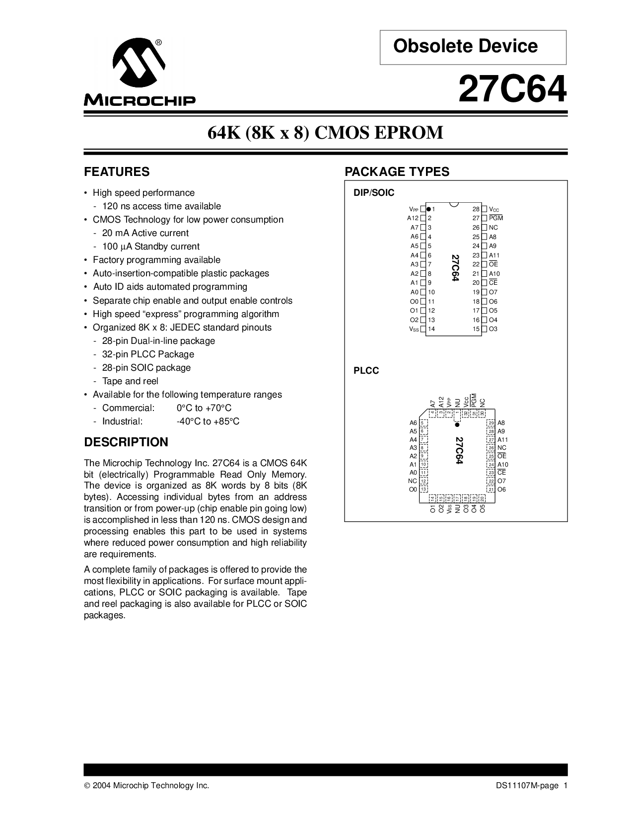 这 微芯片 技术 公司 27c64 是 一个 cmos 64k