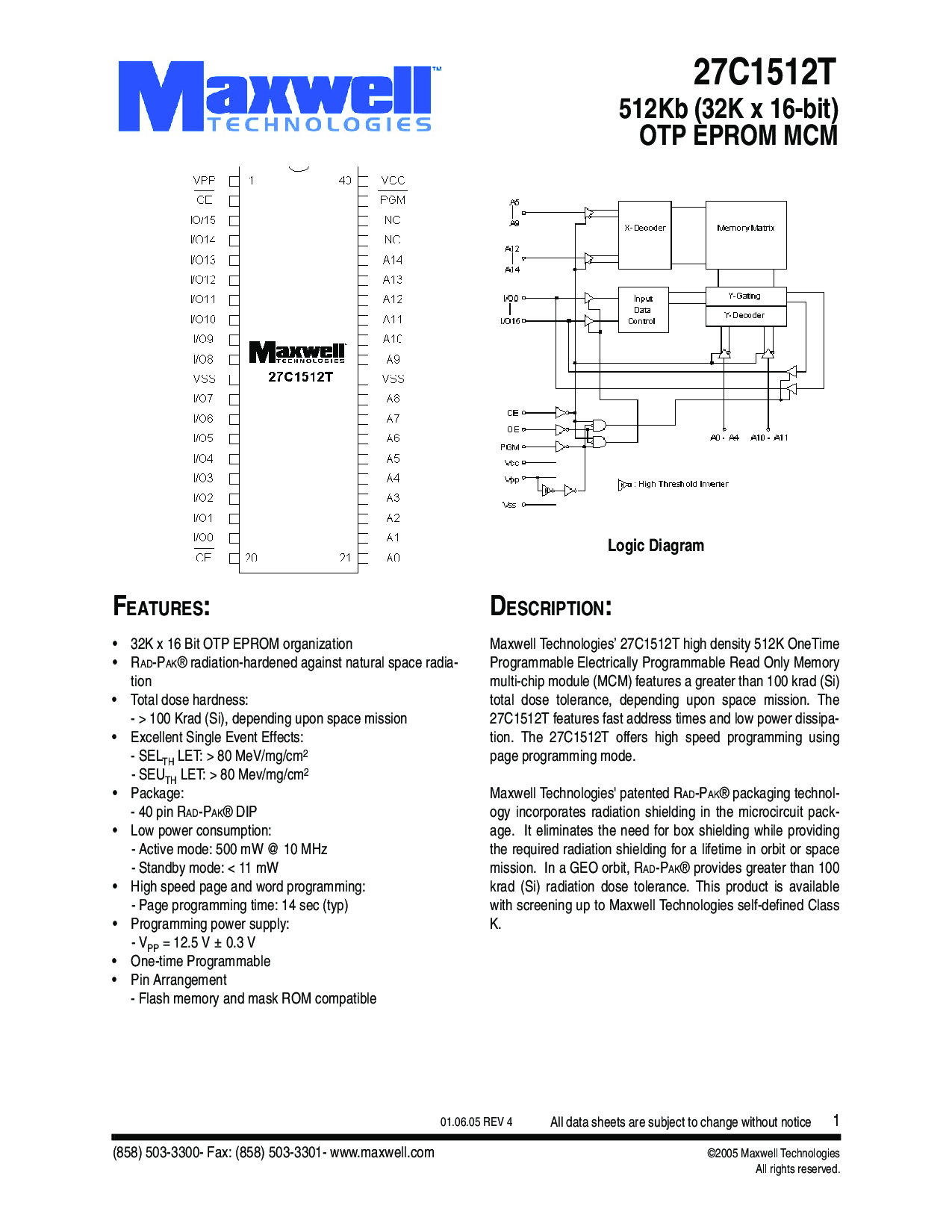 maxwell 技术’ 27c1512t 高 密度 512k onetime