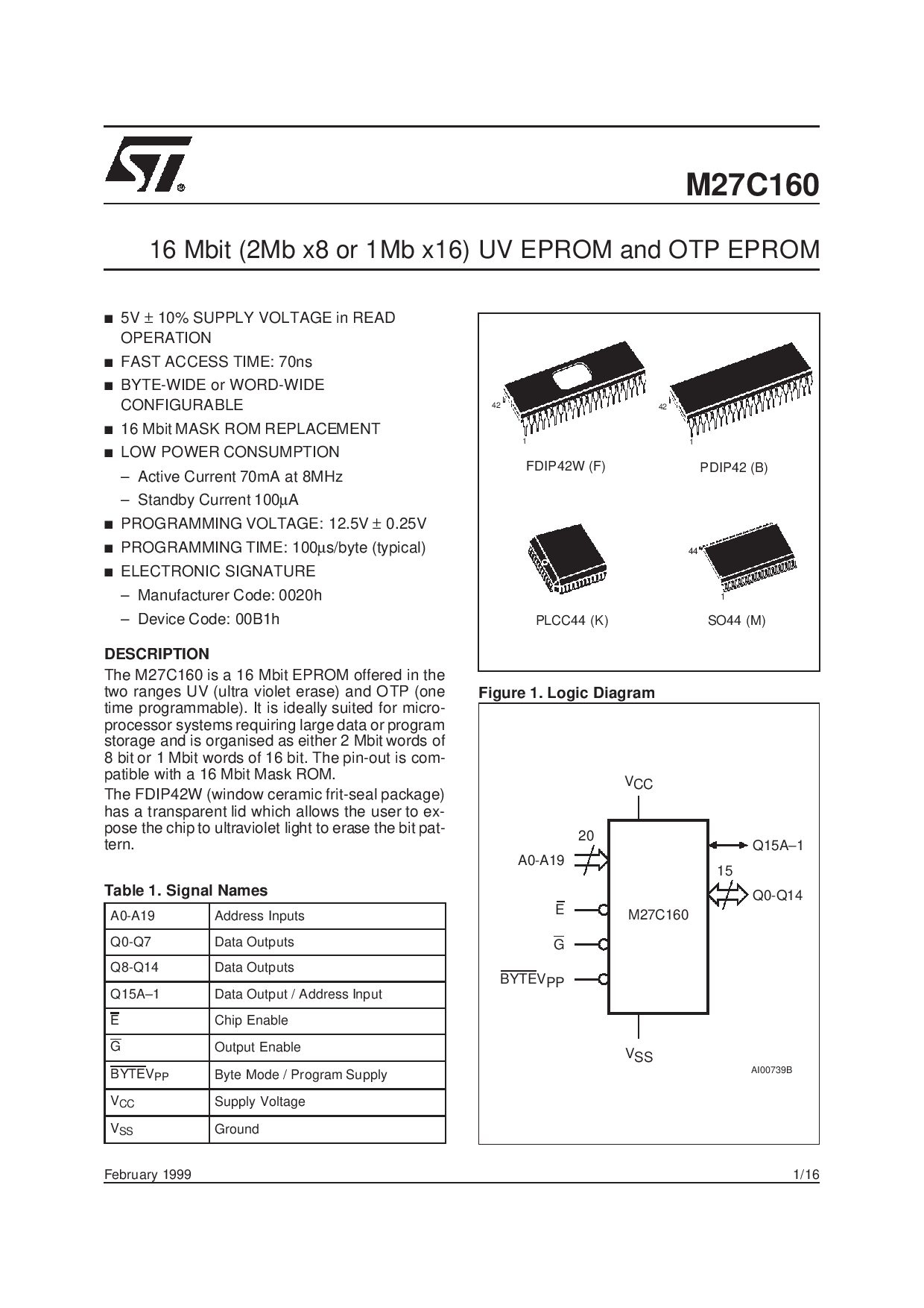 16 Mbit (2mb x8 或 1Mb x16) UV 非易失存储器 和 OTP 非易失存储器