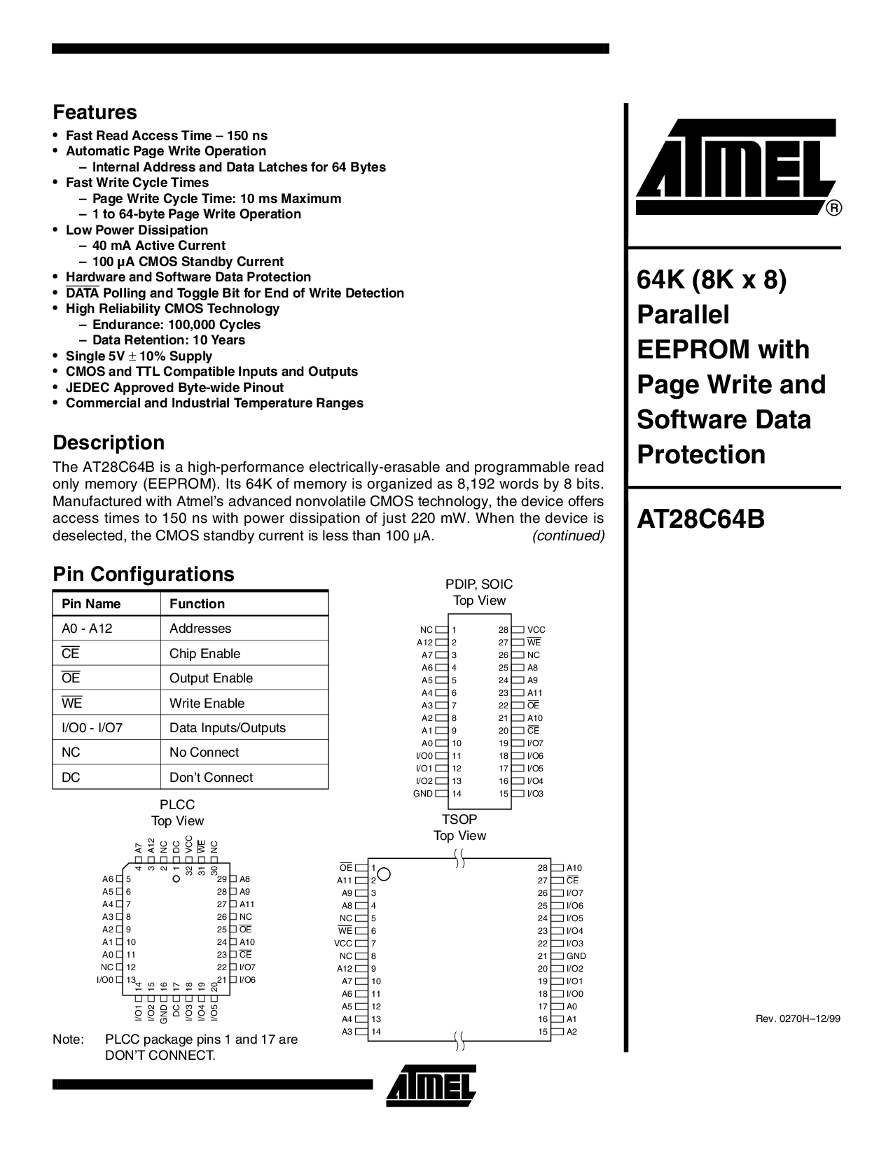 这 at28c64b 是 一个 高性能 可电擦除 和 可编程 阅读