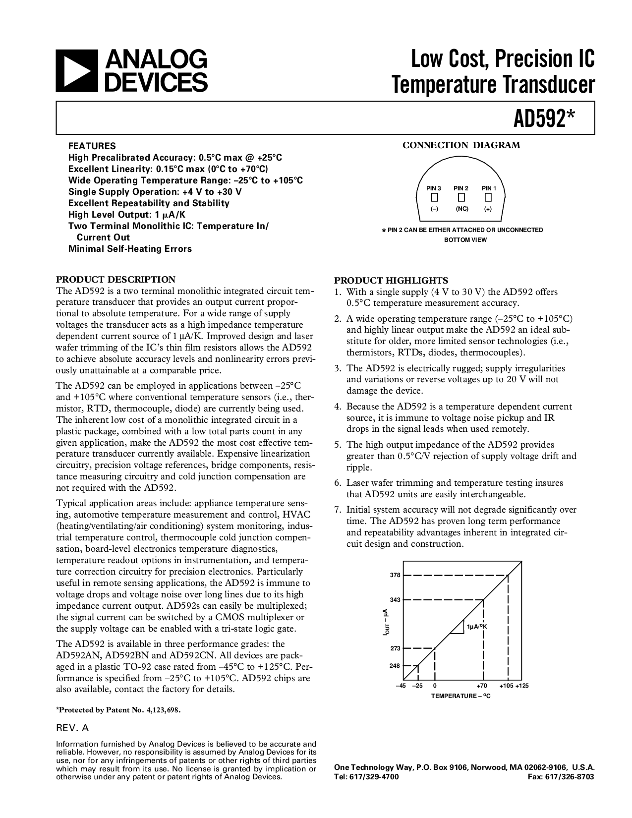 和 高度 线性 输出 制造 这 ad592 一个 理想 sub-