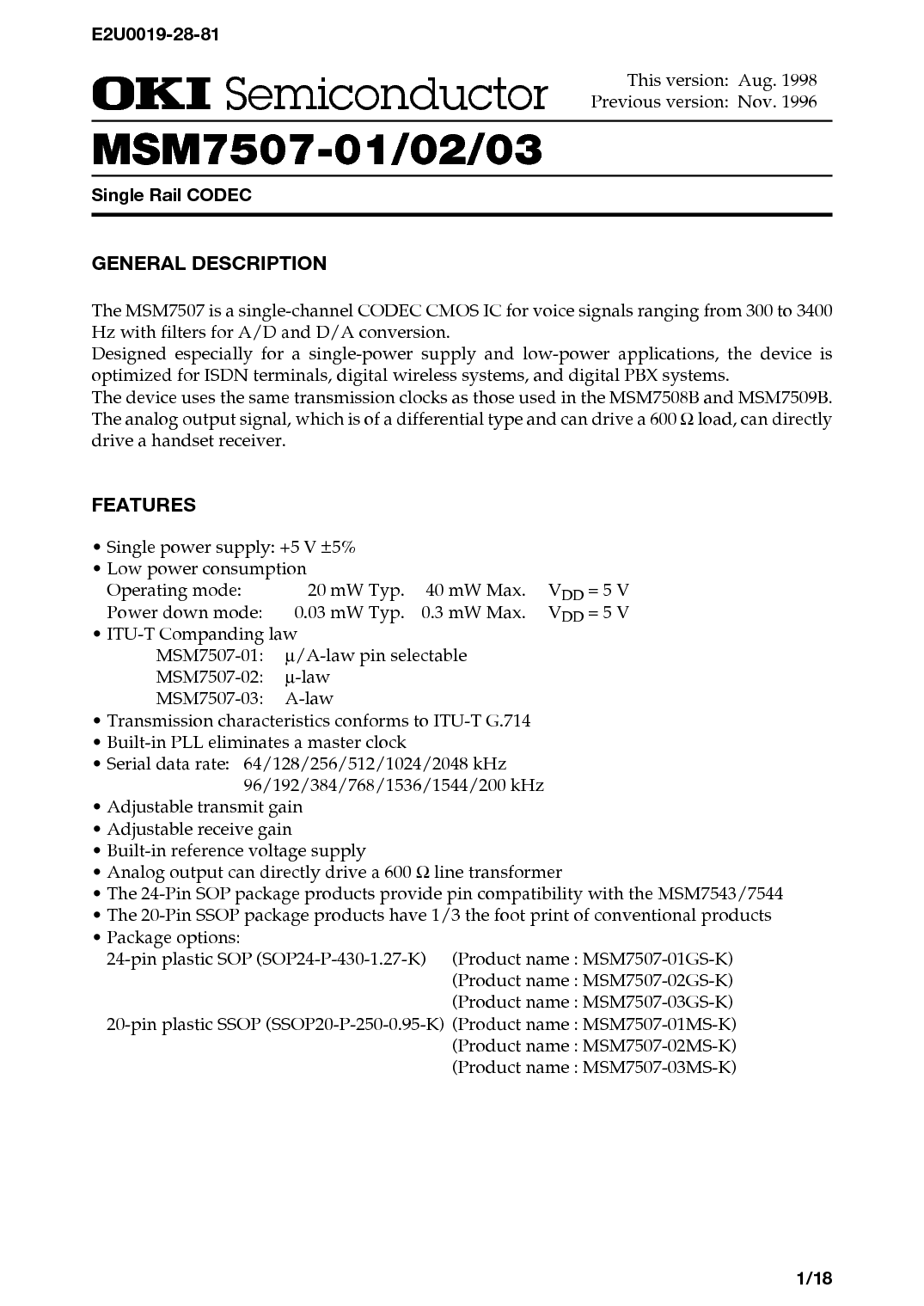 浏览型号MSM7507-01的Datasheet PDF文件第3页