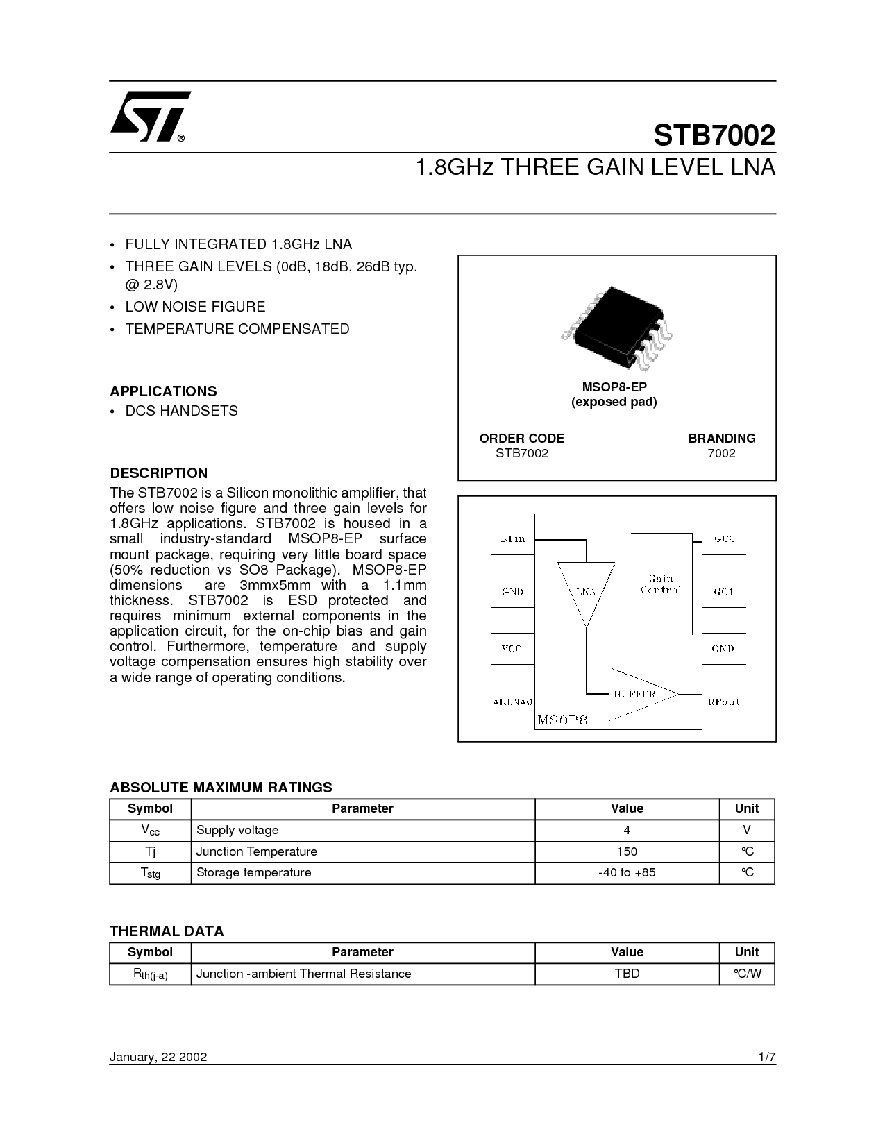 这 stb7002 是 一个 硅 单片 放大器, 那