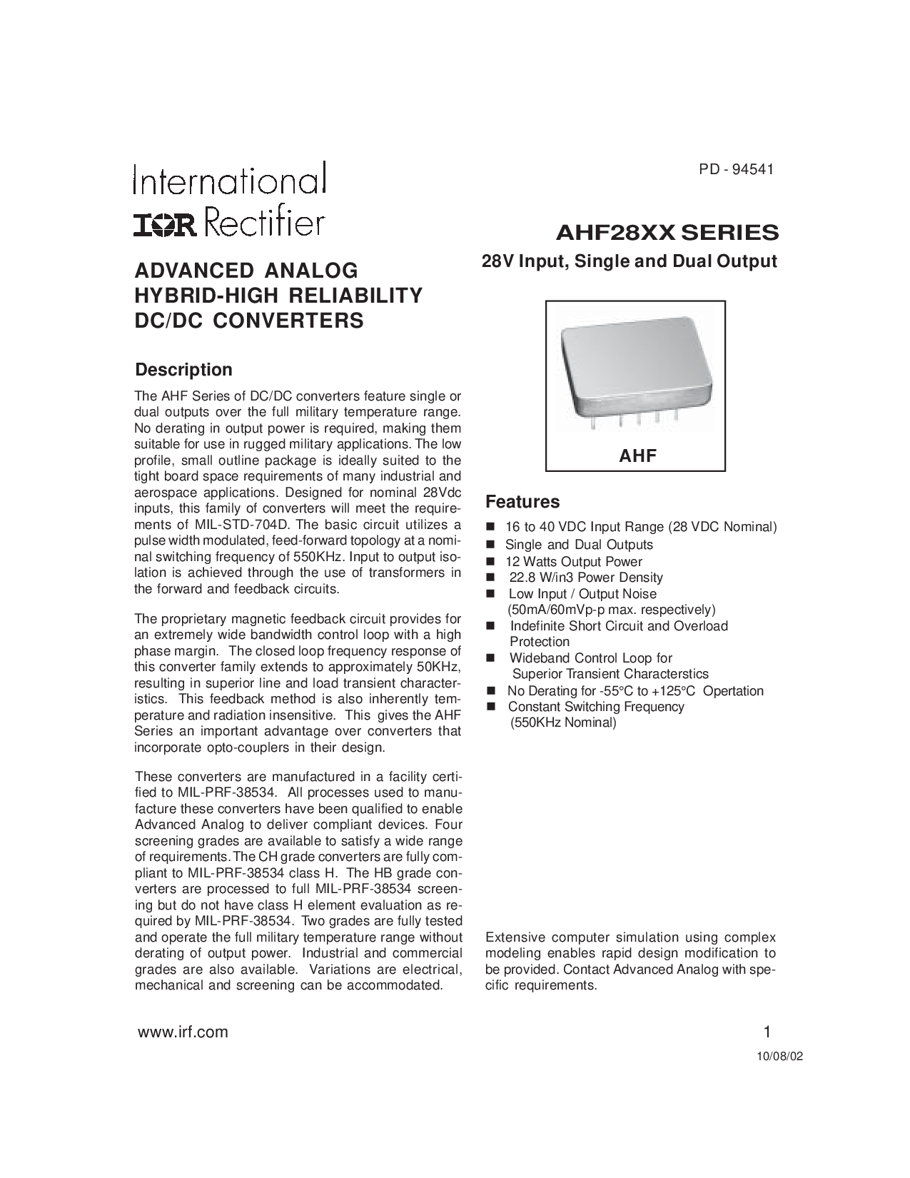 这 ahf 系列 的 直流/直流 转换器 功能 单独 或
