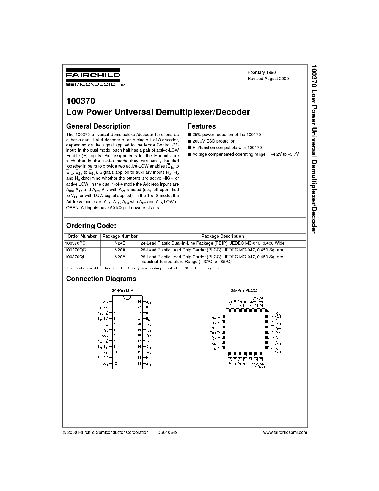 © 2000 仙童 半导体 公司 DS010649 www.仙女半.com
