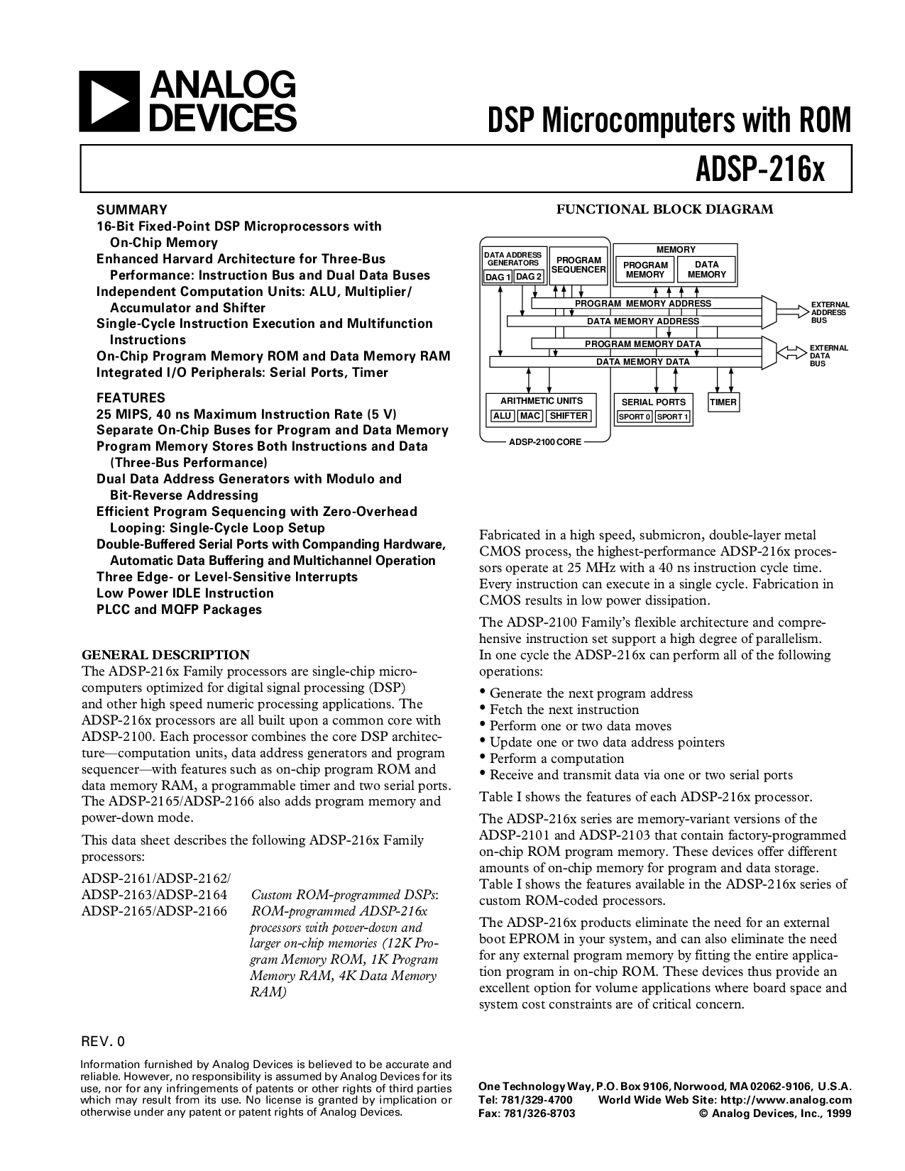 浏览型号ADSP-2166KS-66的Datasheet PDF文件第2页