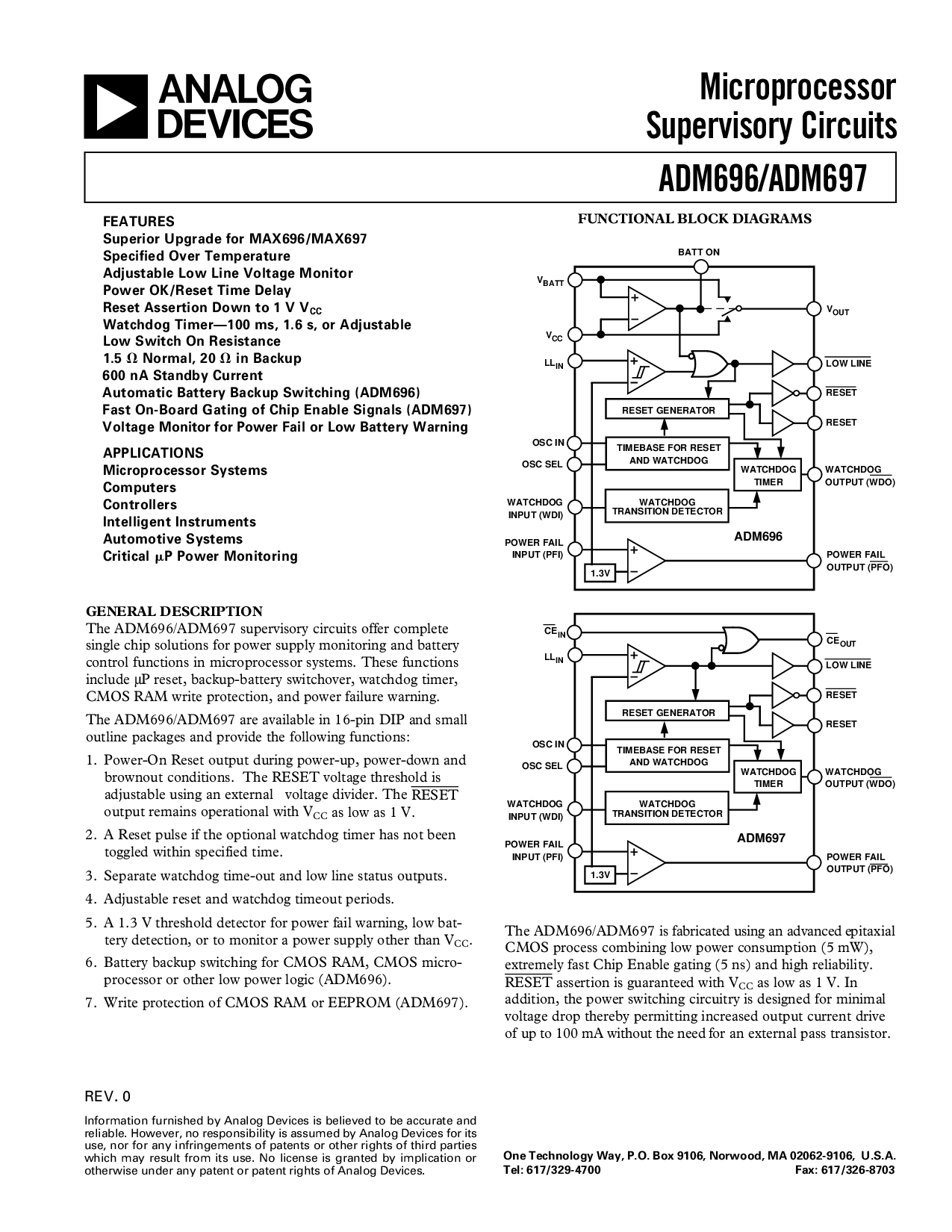 这 adm696/adm697 是 可用 入点 16-管脚 倾角 和 小