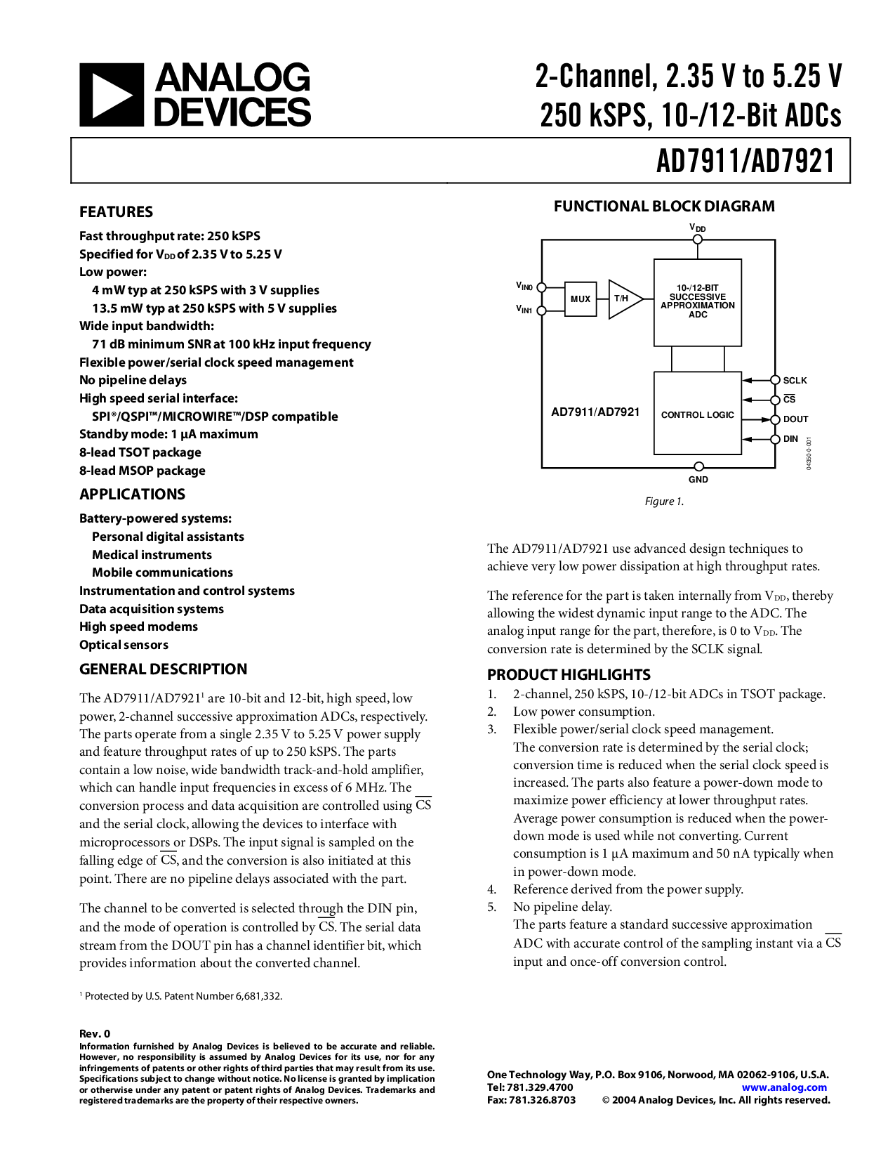 这 ad7911/ad7921 使用 高级 设计 技术 至