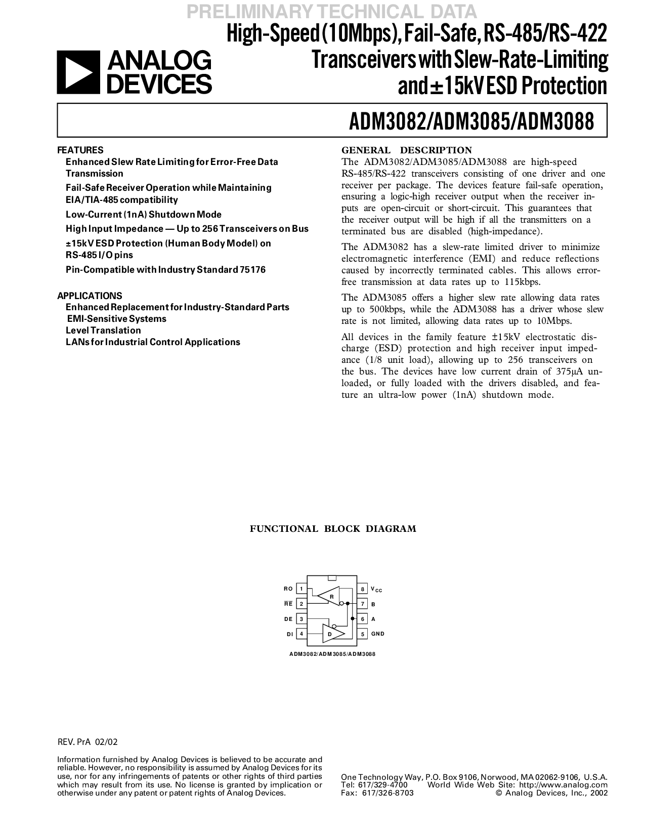浏览型号ADM3088JN的Datasheet PDF文件第2页