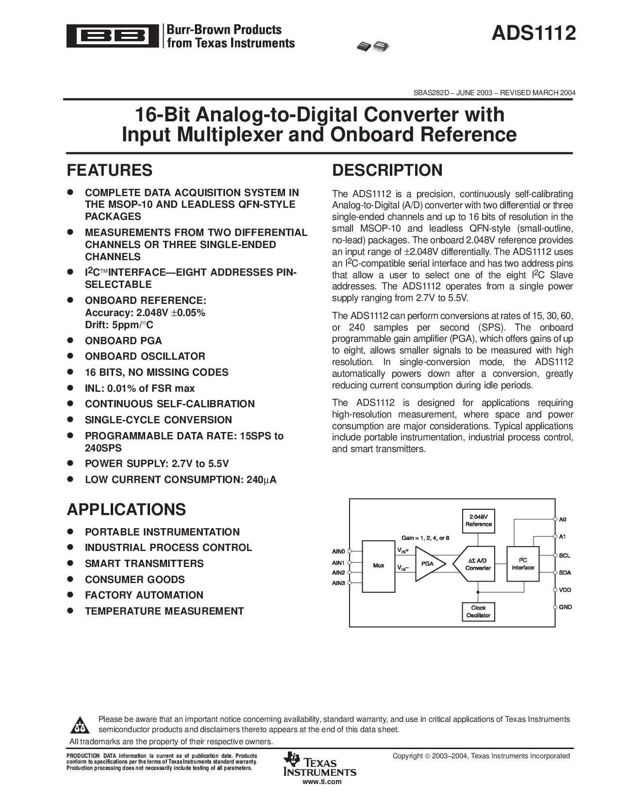 sbas282d −六月 2003 − 修订 march 2004