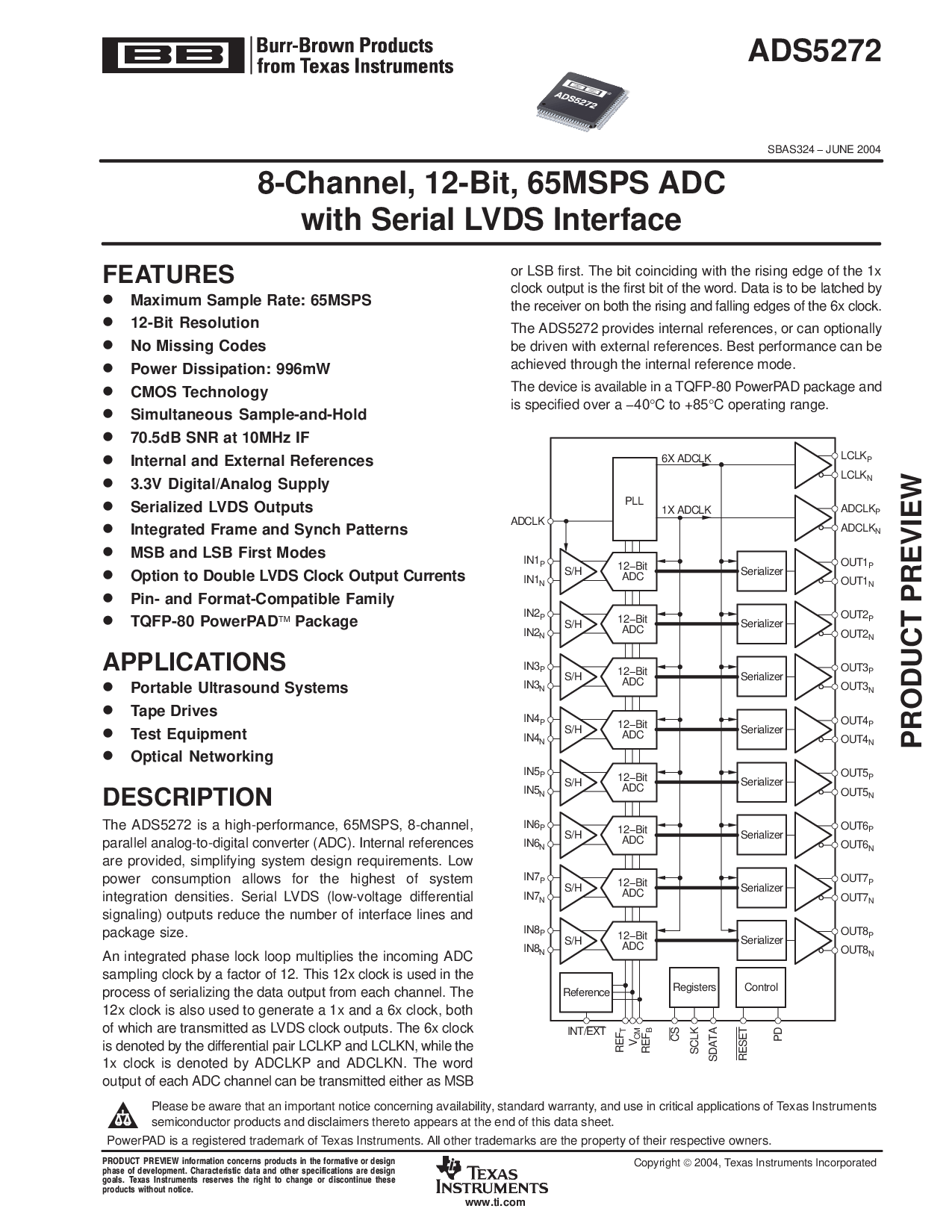 这 ads5272 是 一个 高-业绩, 65msps, 8-频道,
