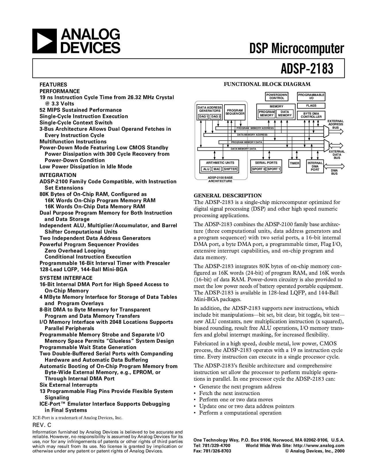 浏览型号ADSP-2183KST-160的Datasheet PDF文件第2页