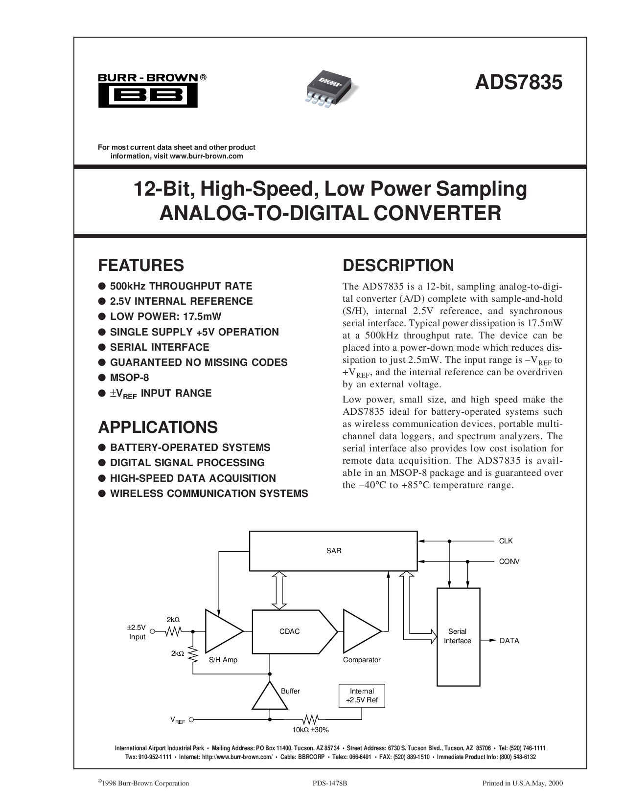 这 ads7835 是 一个 12-有点, 取样 模拟-至-数字-