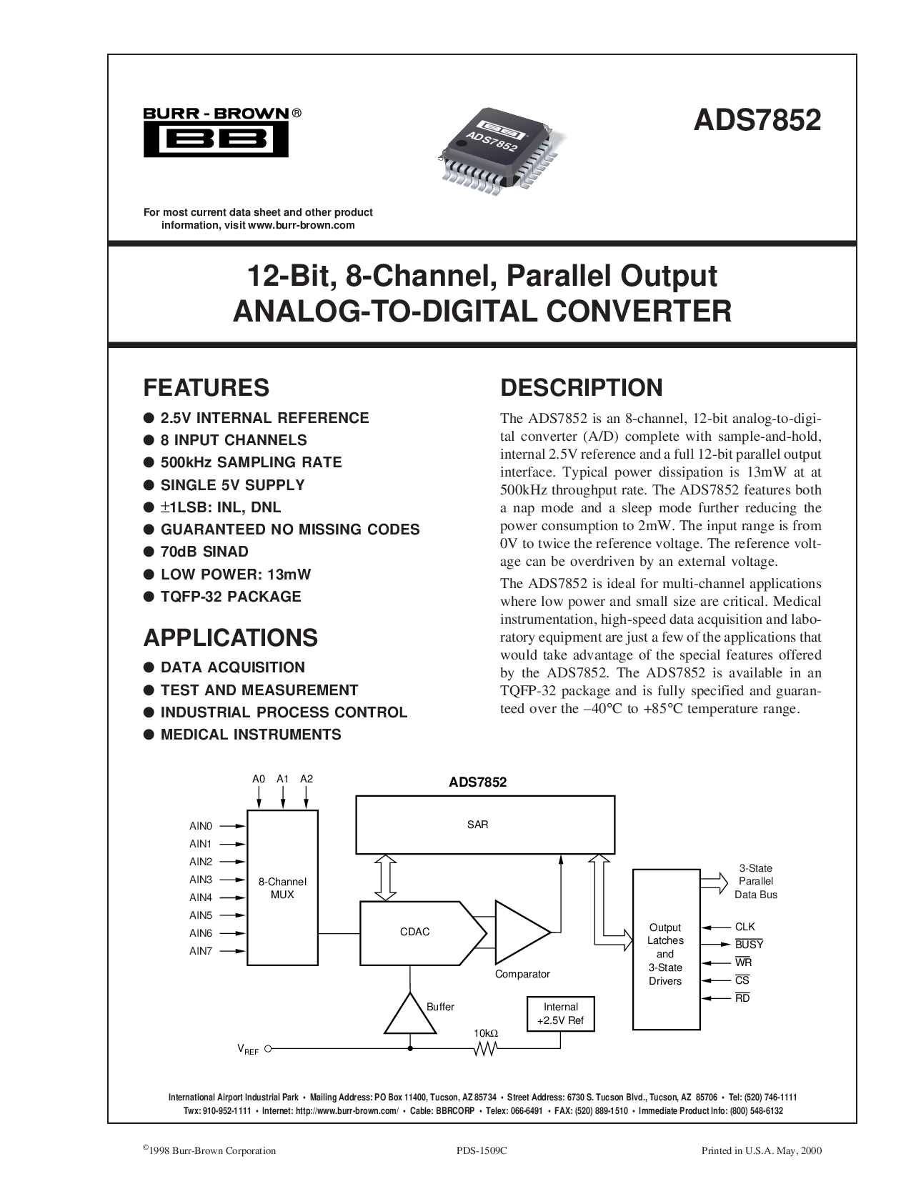 500khz 吞吐量 费率. 这 ads7852 特点 两者都有