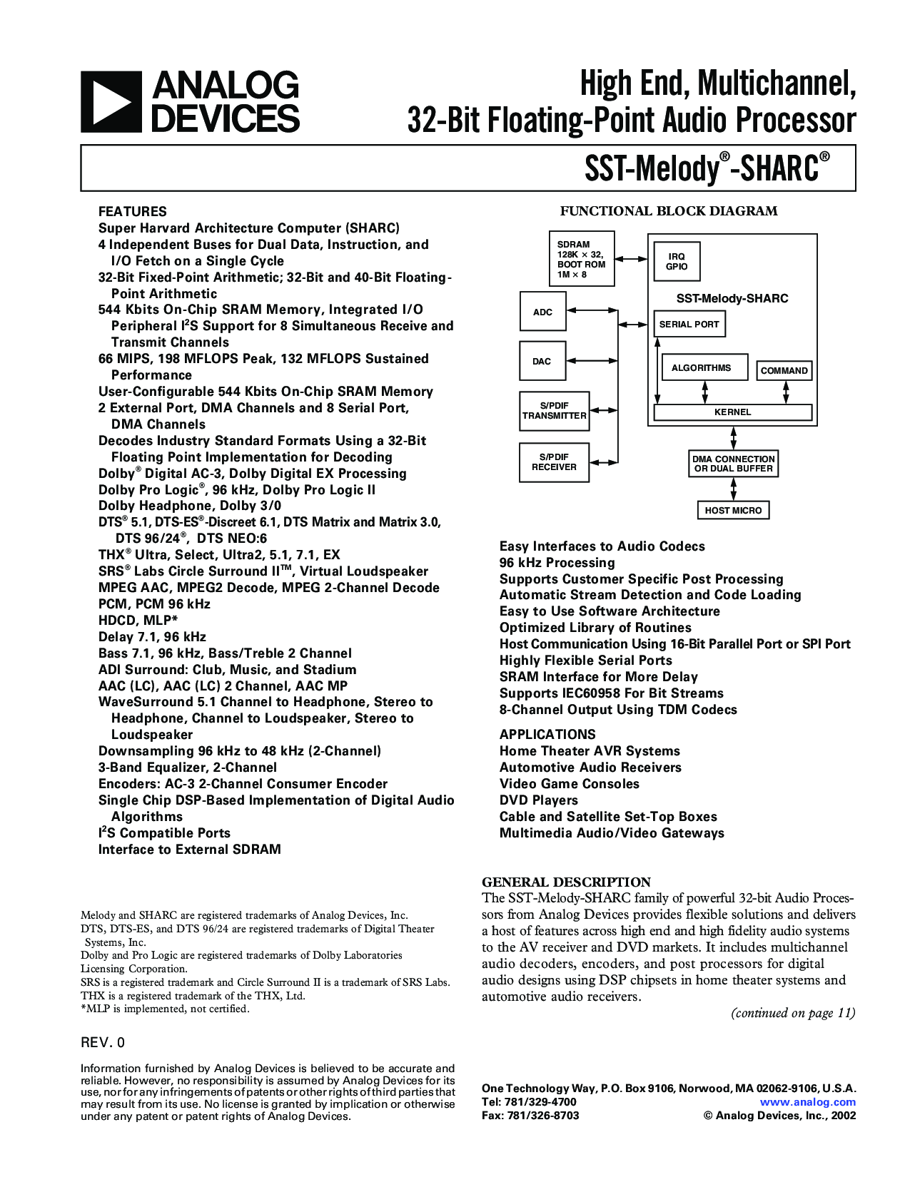melody 和 sharc 是 已注册 商标 的 模拟 设备, 公司
