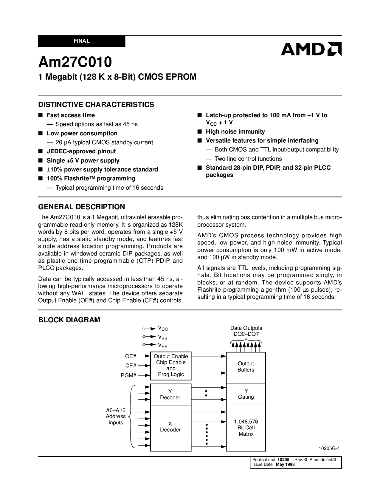 这 am27c010 是 一个 1 兆位, 紫外线 可擦除 专业版-