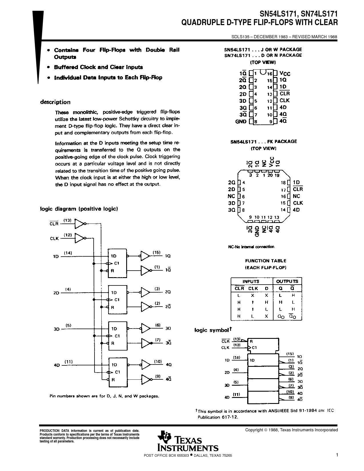 QUADRUPLE D-TYPE FLIP-FLOPS WITH CLEAR