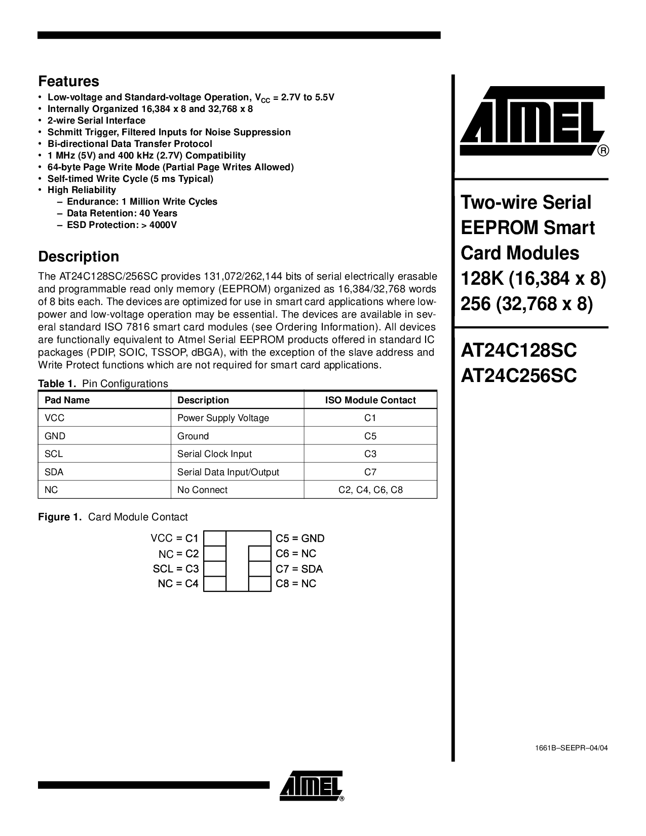 这 at24c128sc/256sc 提供 131,072/262,144 比特 的 串行 电气 可擦除