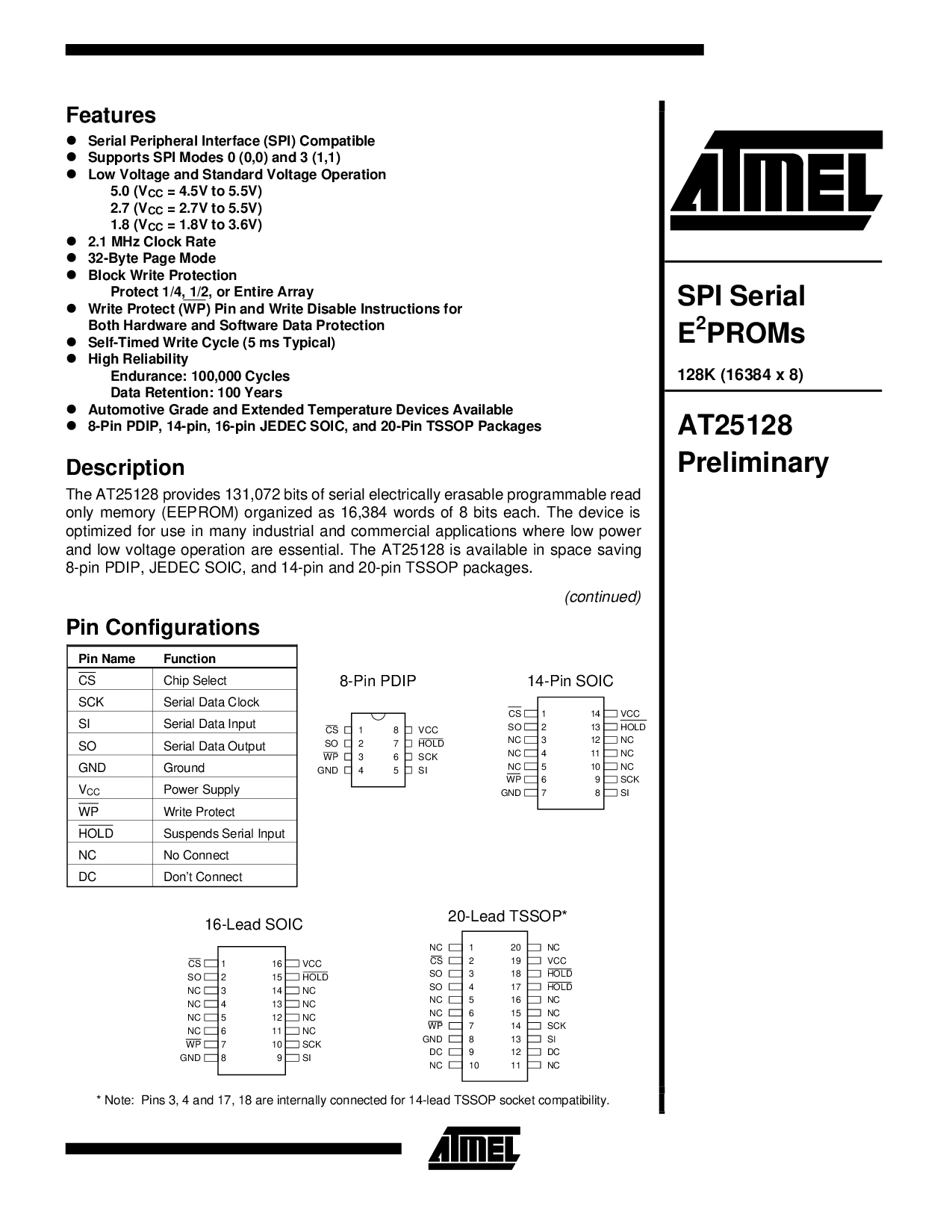 和 低 电压 操作 是 必不可少的. 这 at25128 是 可用 入点 空间 正在保存