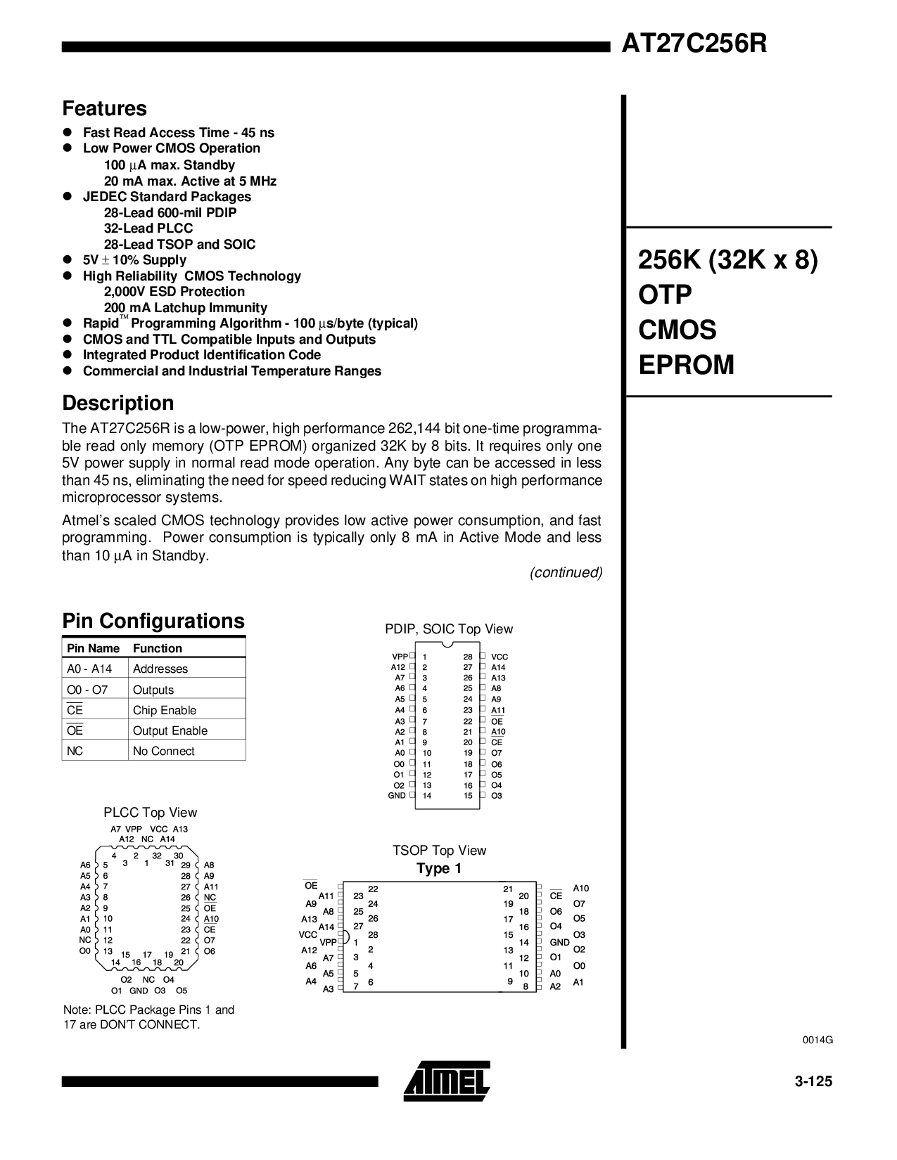 这 at27c256r 是 一个 低-电源, 高 业绩 262,144 有点 一次性 programma-