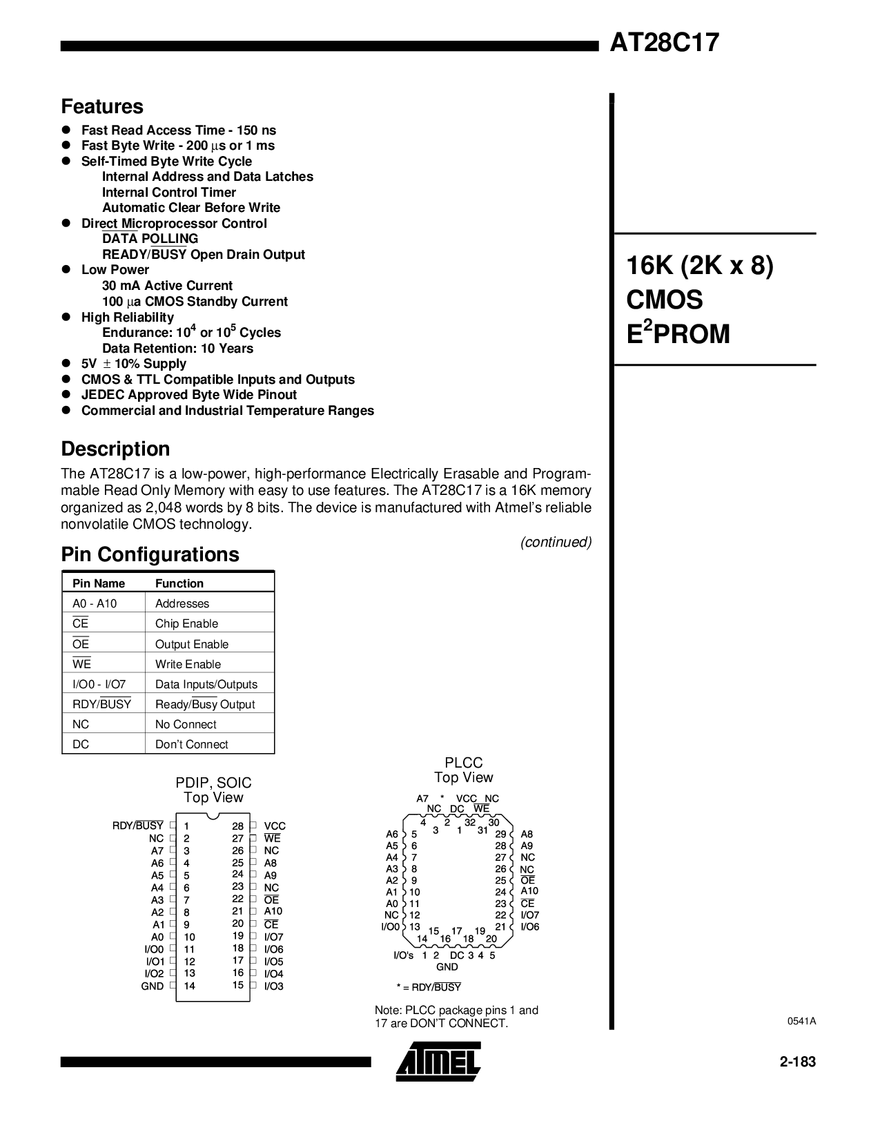 mable 阅读 仅 记忆 与 容易 至 使用 特点. 这 at28c17 是 一个 16k 记忆