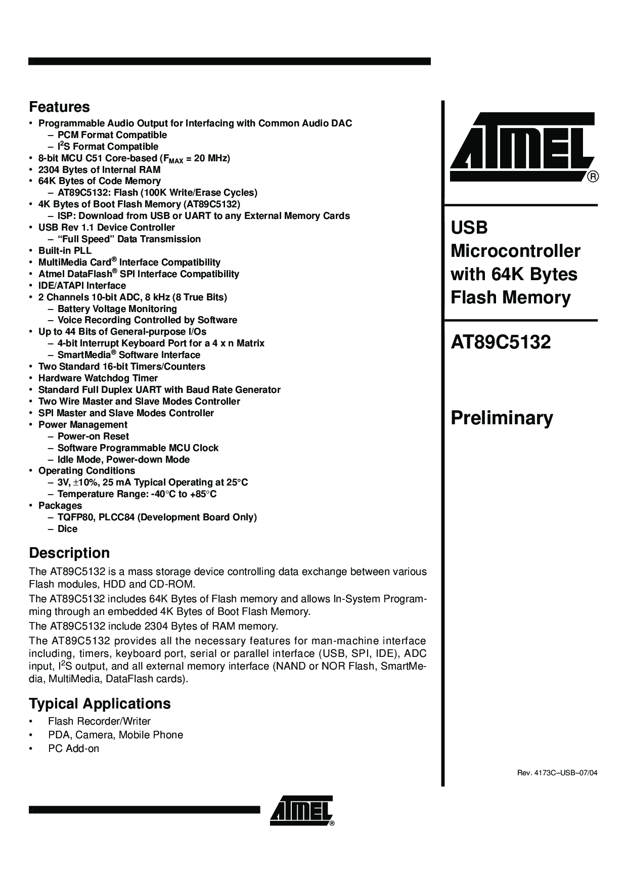 这 at89c5132 是 一个 质量 存储 设备 控制 数据 交易所 之间 各种