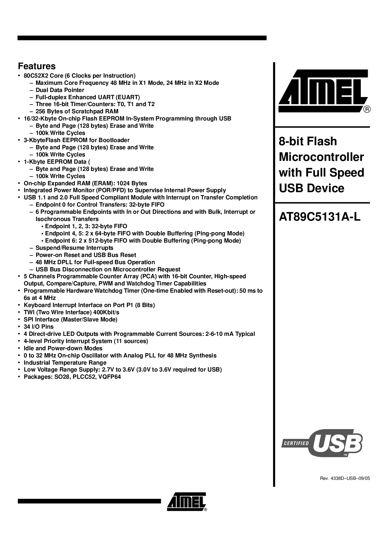 16/32-kbyte 片上 闪光灯 可擦可编程只读存储器 在系统内 编程 通过 usb