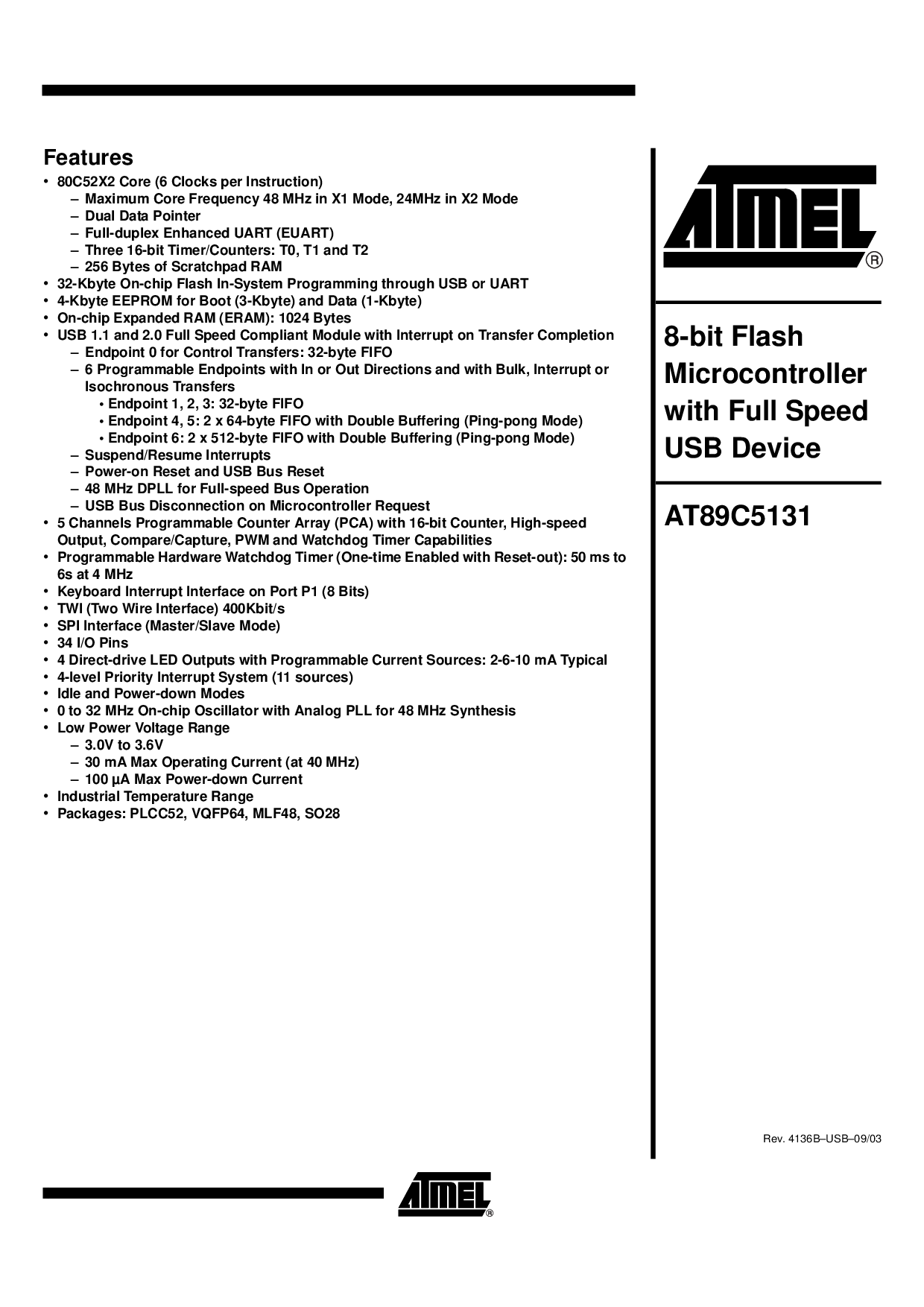 浏览型号AT89C5131-PLTIL的Datasheet PDF文件第2页
