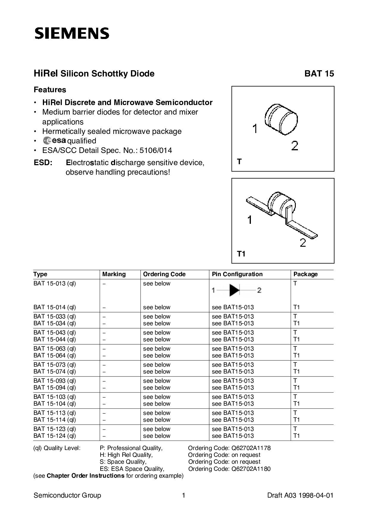 es: esa 空间 质量, 订购 代码: q62702a1180