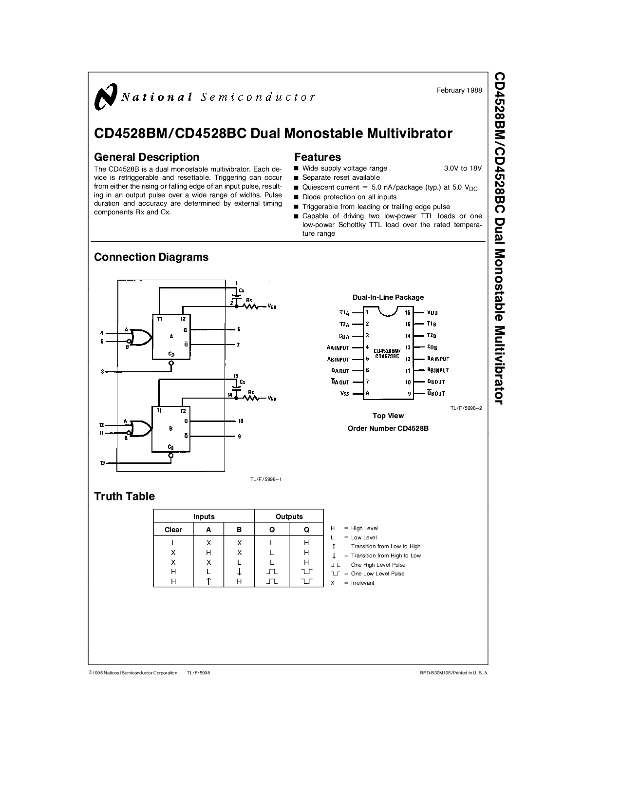 CD4528BMCD4528BC 双 单稳态 多谐振荡器