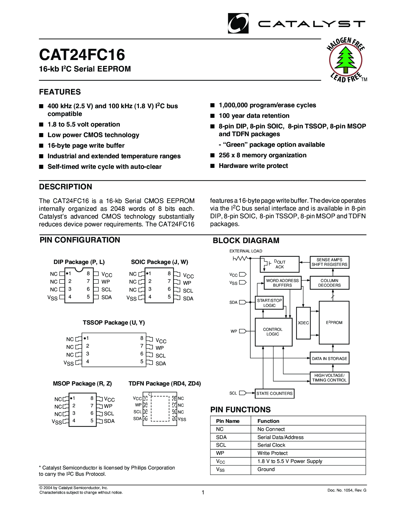 这 cat24fc16 是 一个 16-kb 串行 cmos 可擦可编程只读存储器