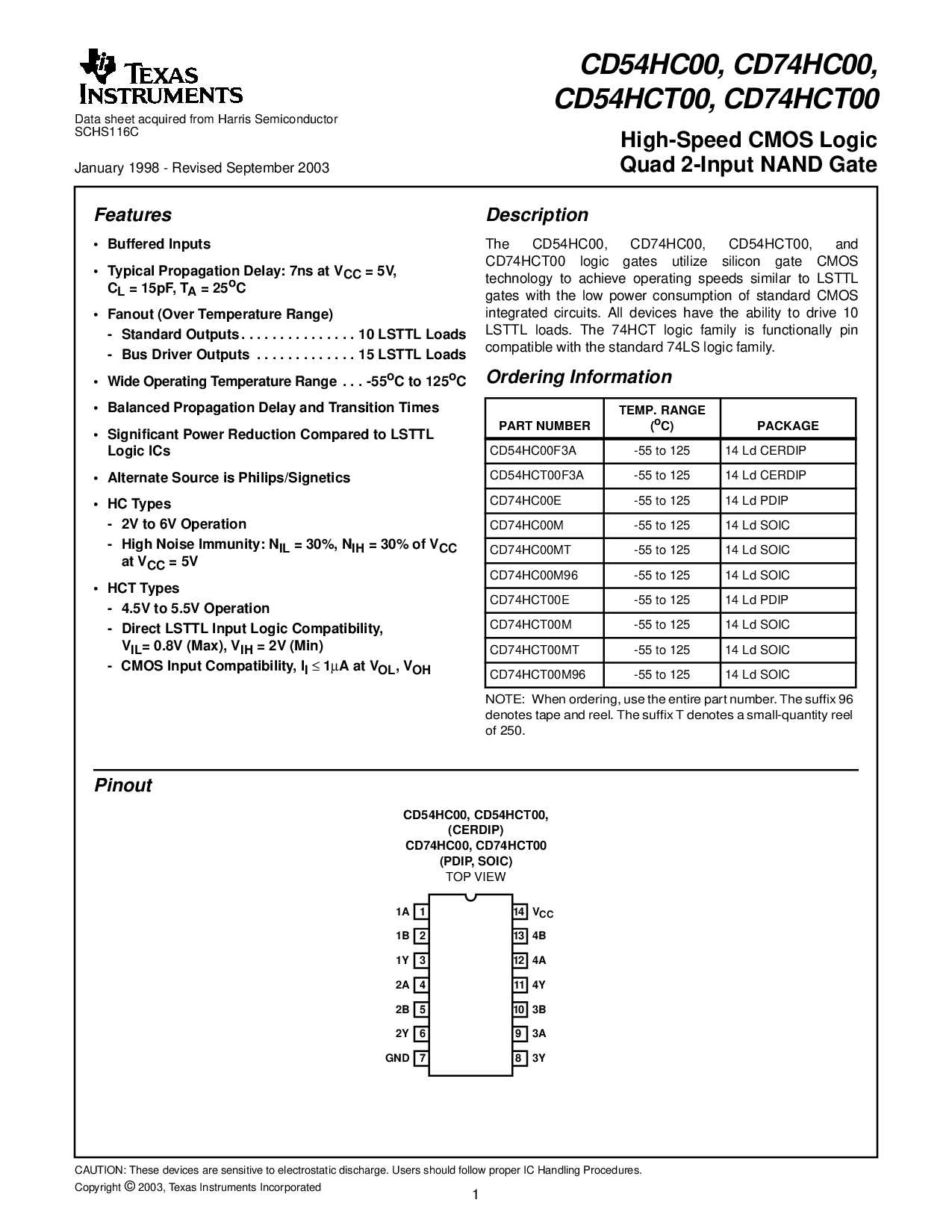 这 cd54hc00, cd74hc00, cd54hct00, 和
