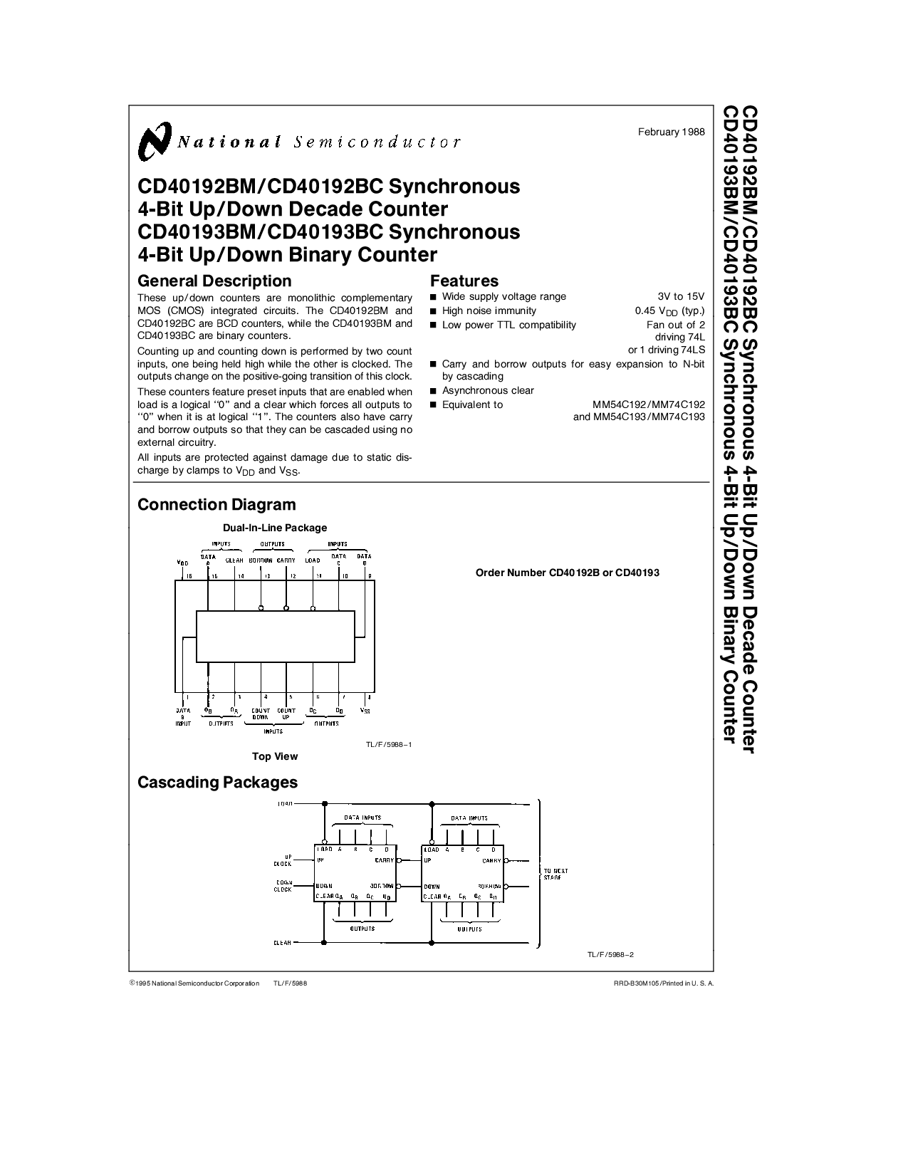浏览型号CD40193BC的Datasheet PDF文件第2页